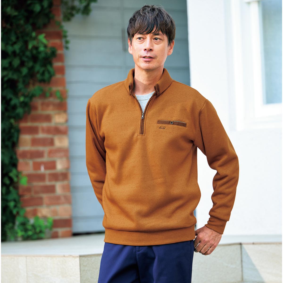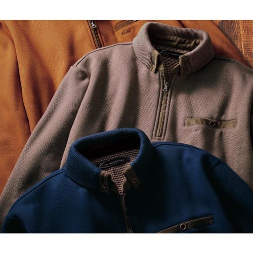 -お買い得ポイント-衿もとのデザインや、コーデュロイの別布使いなど個性的なデザインが魅力のハーフジップトレーナーです。-デザイン-衿裏と背裏はグレンチェックの別布がアクセントに。ポケット口はコーデュロイ、内側はグレンチェックの別布使い。-素材特徴-裏側はしなやかな起毛素材で着心地よく暖かい。