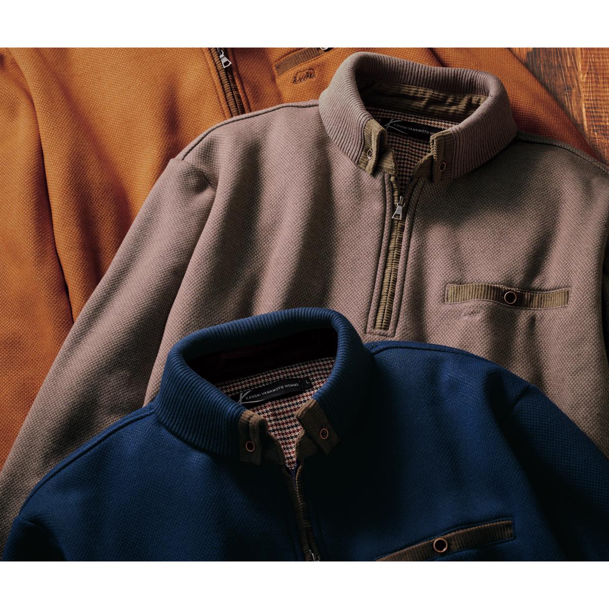 【KANSAI YAMAMOTO HOMME】衿もとで差をつけるハーフジップトレーナー!