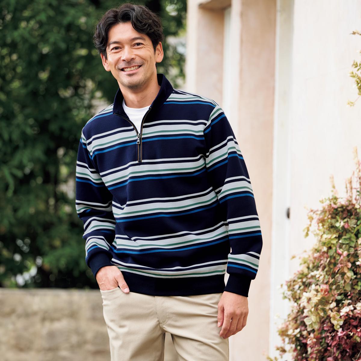 ハーフジップ仕様で着せやすい。