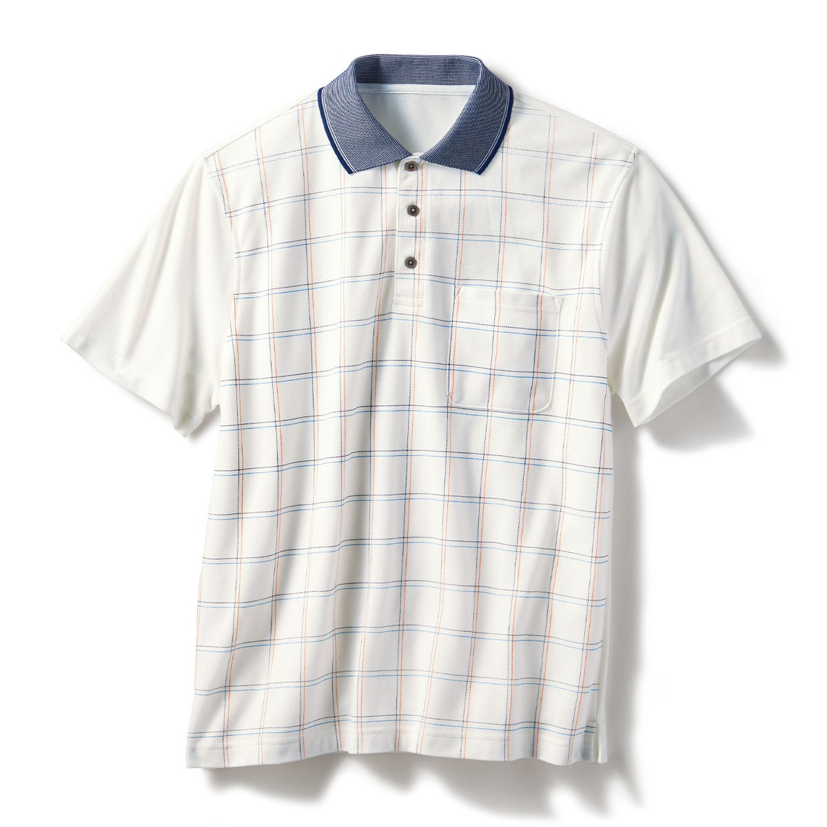 -お買い得ポイント-風合いのよさと上品な柄で大人の普段着にさりげなく映える一着です。-デザイン-衿のライン使いやさりげないチェック柄がポイント。-素材特徴-サラッと薄手で涼感のある夏らしいポロ。鹿の子素材。