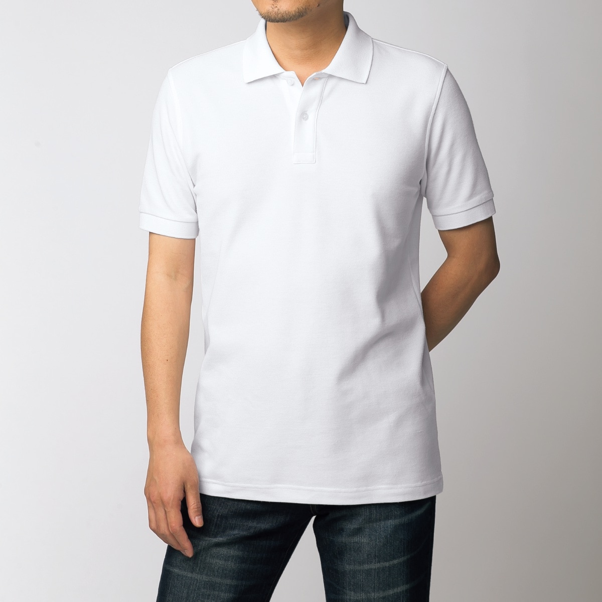 ホワイト着用例Tシャツ感覚の快適さと衿付きゆえのきちんと感が、オトナの春夏スタイルにうってつけな半袖ポロシャツ。