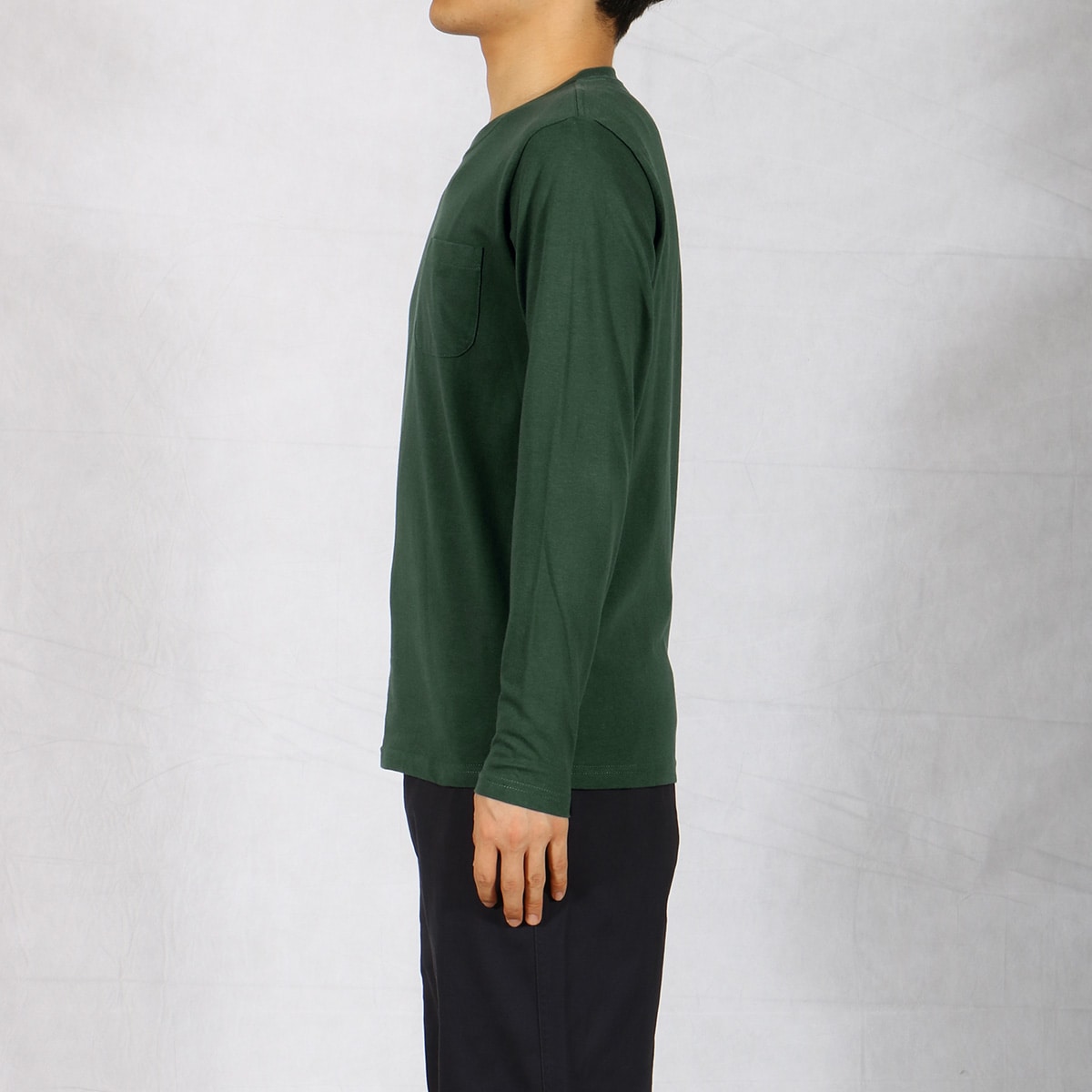 「綿が本来持つポテンシャル」をさらに引き出し、今まで以上にやわらかさ・ふくらみ感をアップさせた24番単糸・天竺素材が魅力の丸首Tシャツ。胸ポケットを若干大きめのラウンド型にして、使い勝手の良い仕様に仕上がっております。