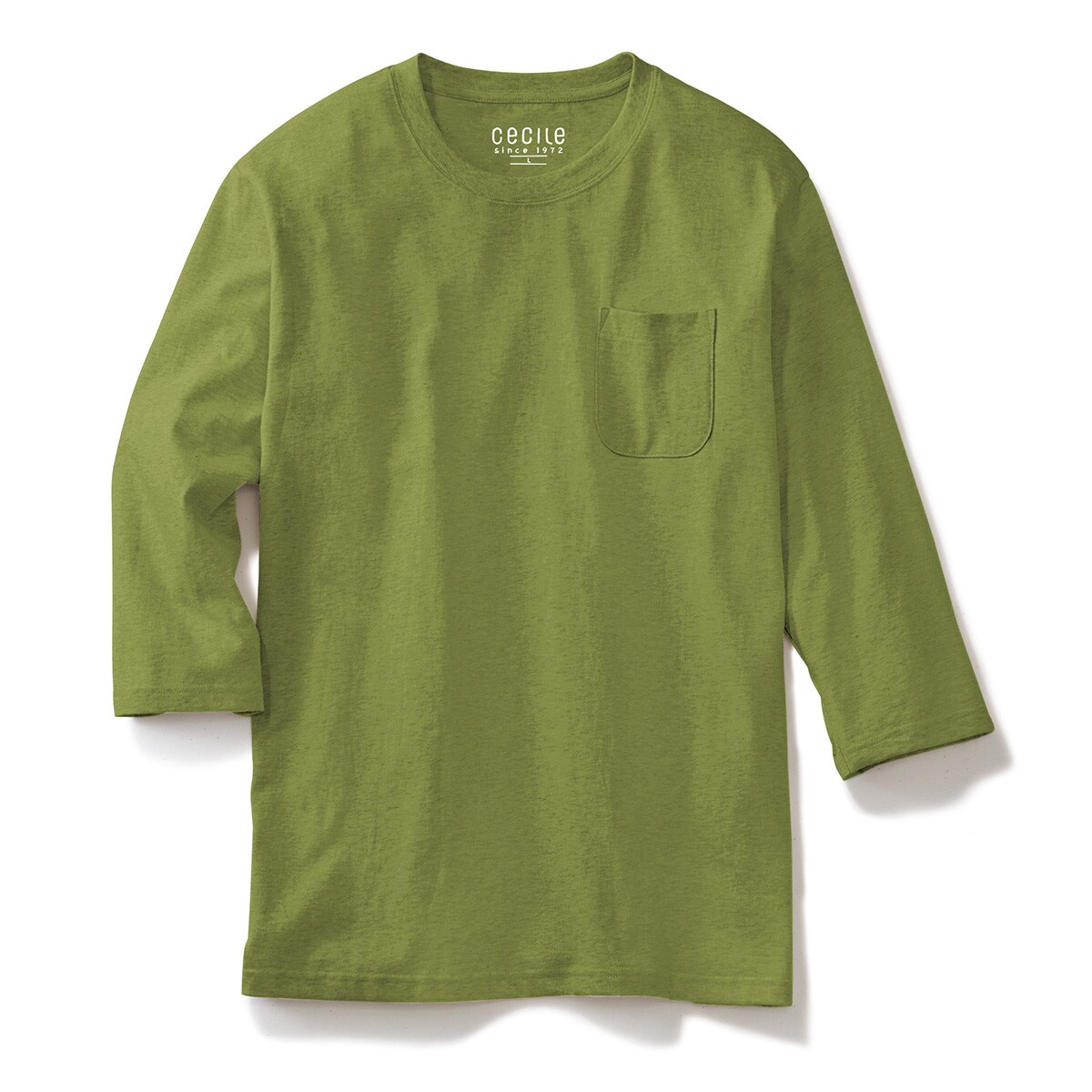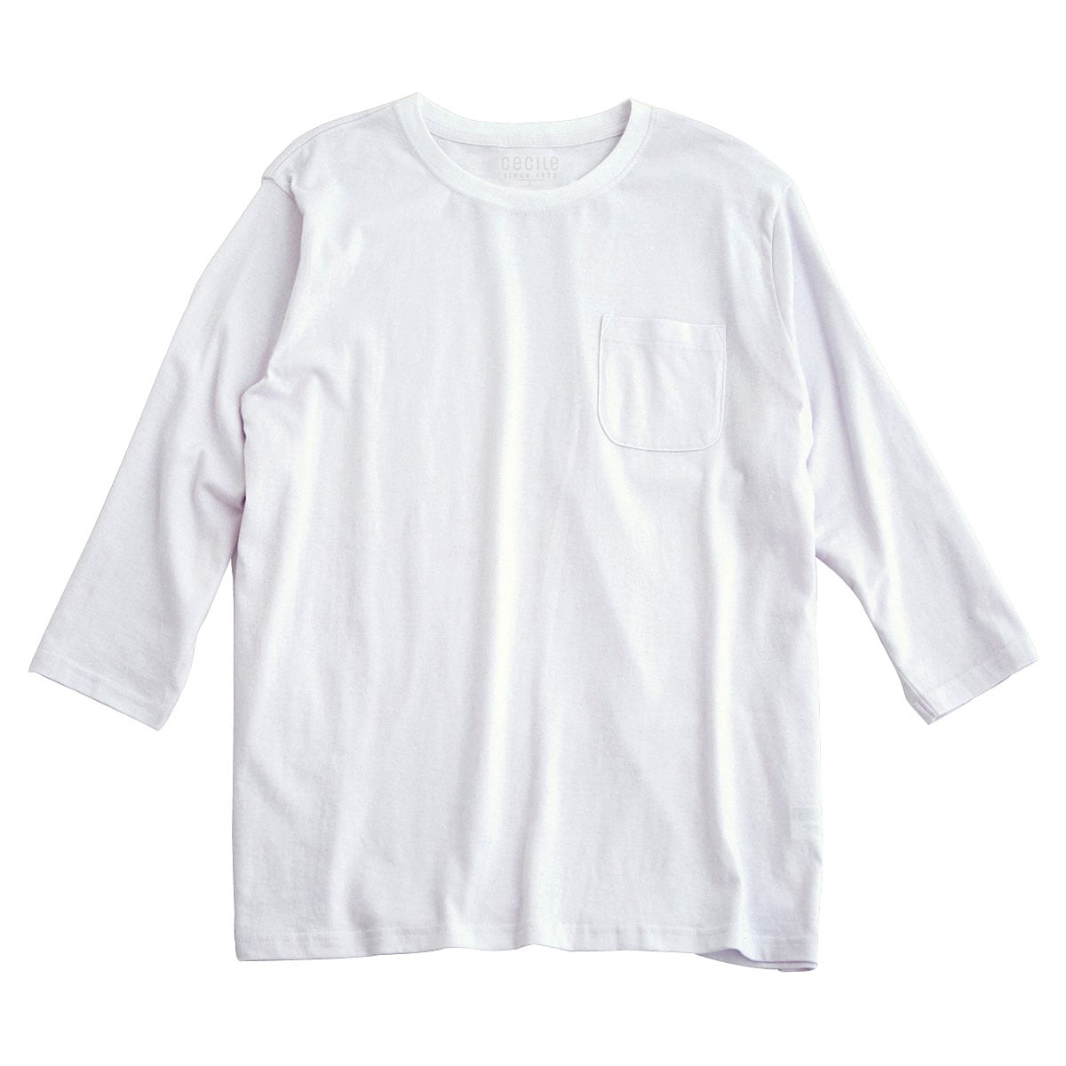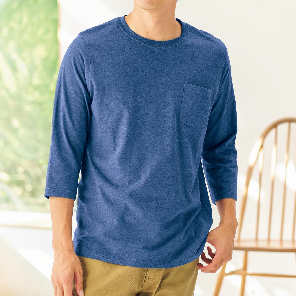 -お買い得ポイント-セシール定番の綿100%Tシャツ。脇の設計もスッキリさせて、シャツなどのインナーとしても使いやすくなっています。長袖Tシャツでは袖が長すぎるという人におすすめの七分袖タイプです。-デザイン-ポケットは若干大きめのラウンド型で仕上げました。-素材特徴-空気の力で綿本来のポテンシャルを最大限に引き出すエアータンブラー加工で、今まで以上にやわらかさ・ふくらみ感をアップさせました。