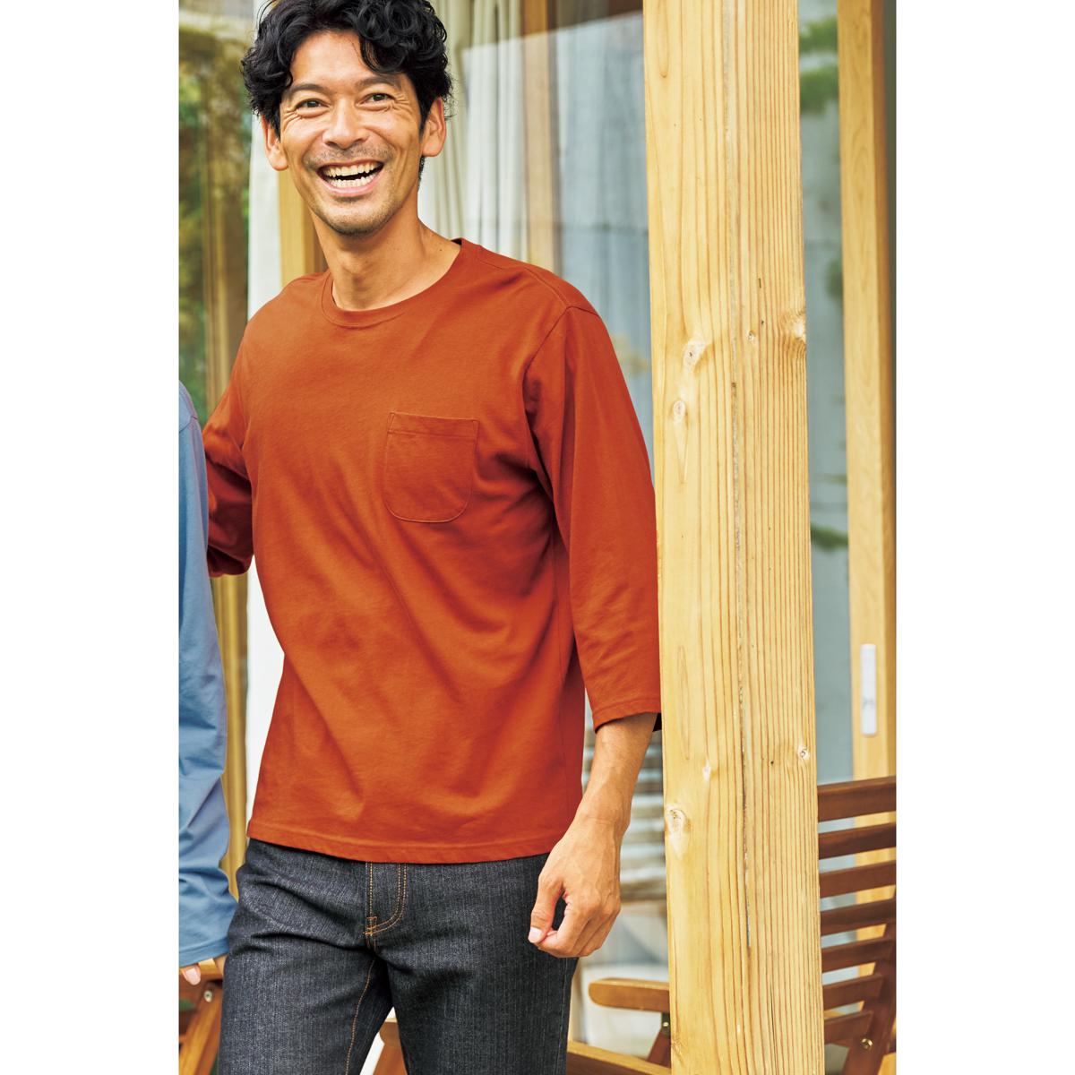 【シンプルで、上質。】こだわりメンズのための七分袖Tシャツ。コットン本来の風合いを引き出した素材が魅力です。