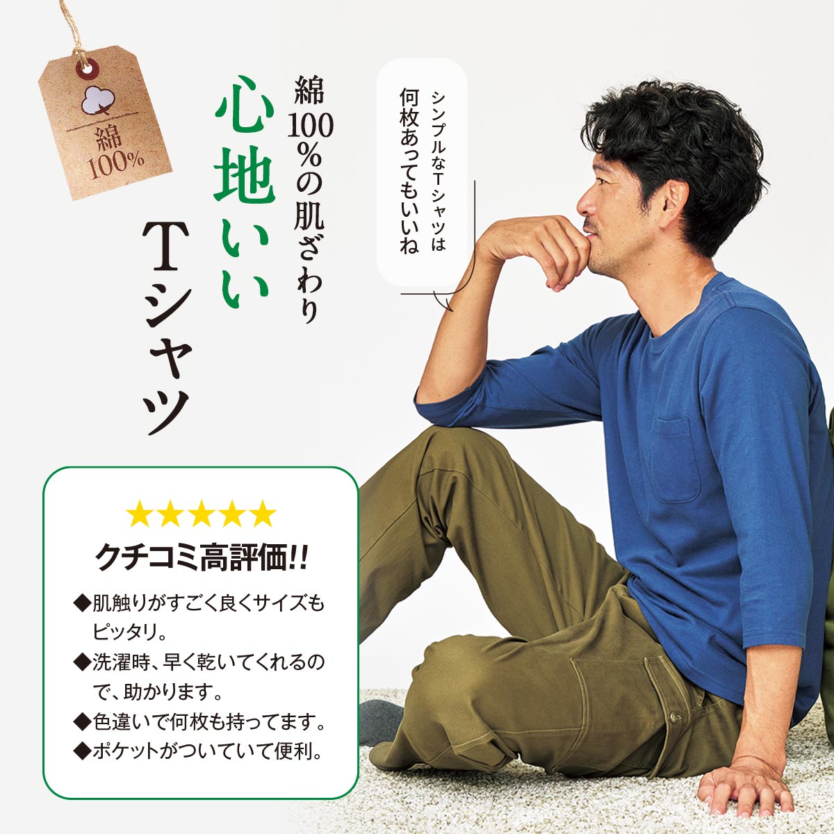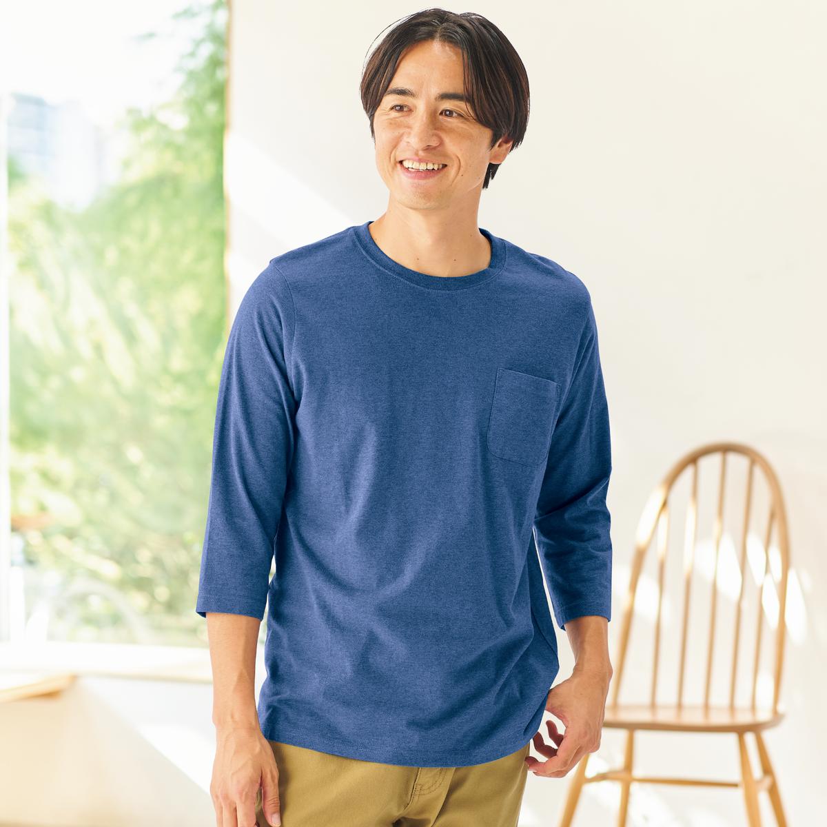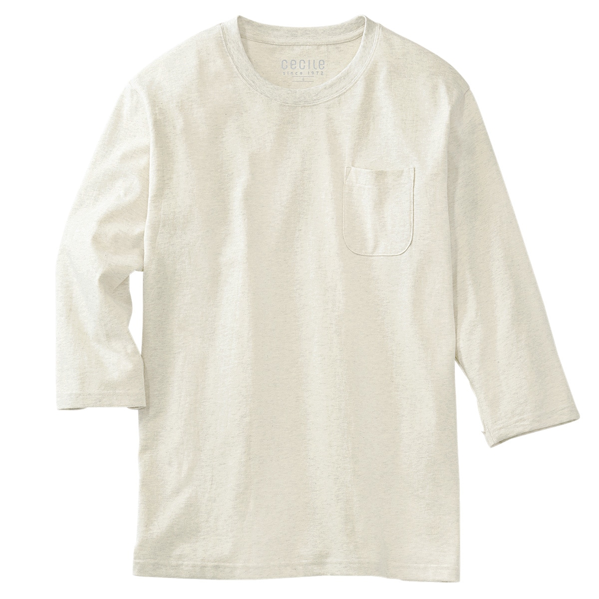 -お買い得ポイント-セシール定番の綿100%Tシャツ。脇の設計もスッキリさせて、シャツなどのインナーとしても使いやすくなっています。-デザイン-長袖Tシャツでは袖が長すぎるという人におすすめの七分袖タイプで、ポケットは若干大きめのラウンド型で仕上げました。-素材特徴-空気の力で綿本来のポテンシャルを最大限に引き出すエアータンブラー加工で、今まで以上にやわらかさ・ふくらみ感をアップさせました。