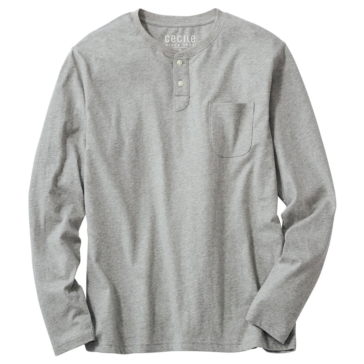 男女兼用!綿100%ヘンリーネックTシャツポケット付き・長袖タイプ
