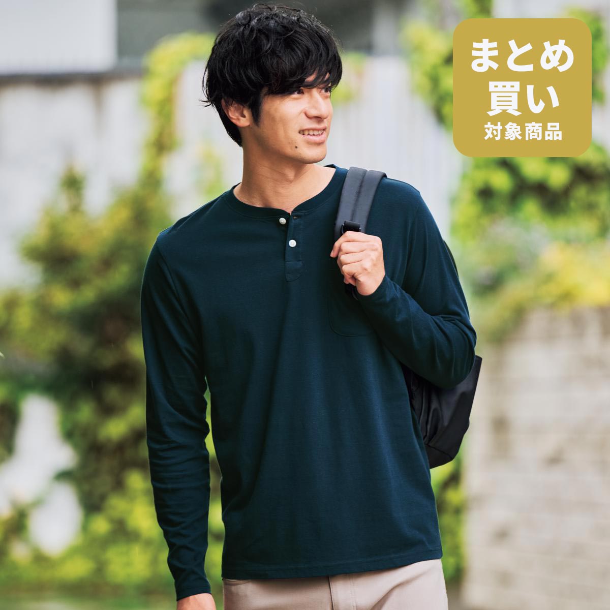 【男女兼用】綿100%ヘンリーネックTシャツ(長袖)