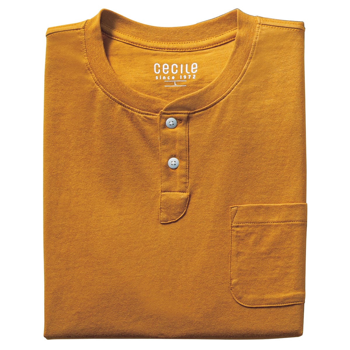 【綿の質感を楽しめる一枚】こだわりメンズのためのベーシックヘンリーネックTシャツ。コットン本来の風合いを引き出しました。