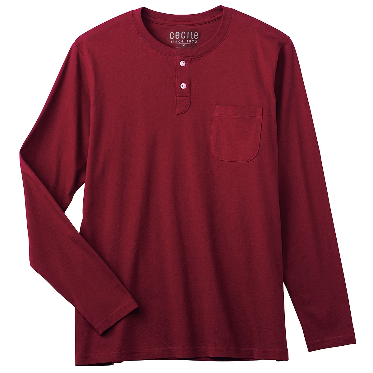 男女兼用!綿100%ヘンリーネックTシャツポケット付き・長袖タイプ