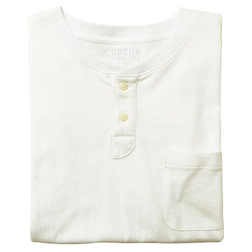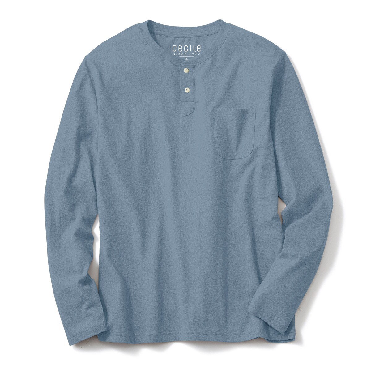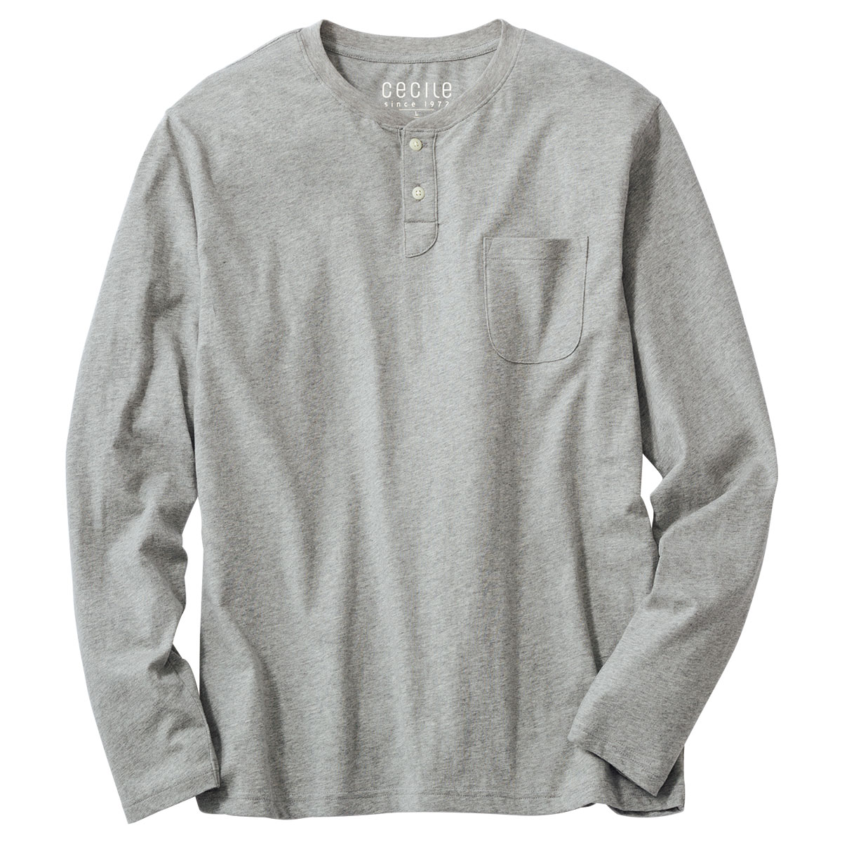 男女兼用!綿100%ヘンリーネックTシャツポケット付き・長袖タイプ