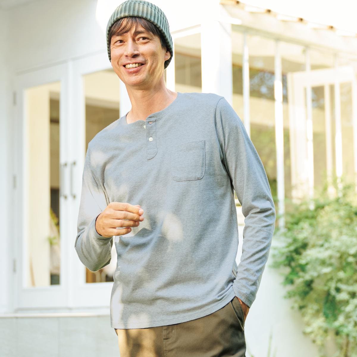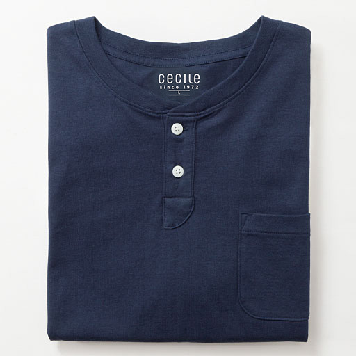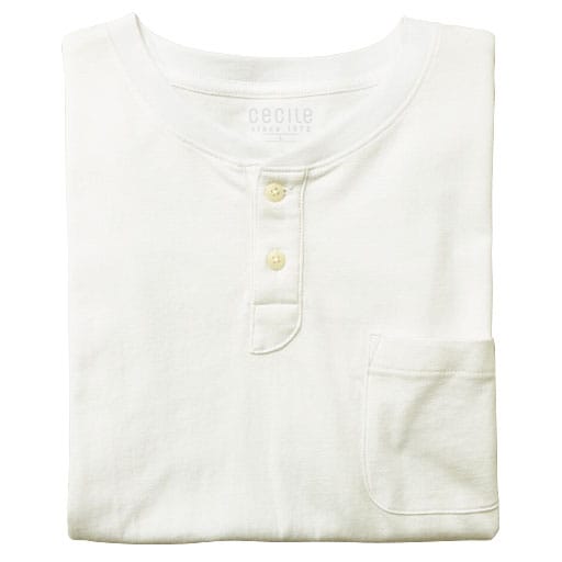 【綿の質感を楽しめる一枚】こだわりメンズのためのベーシックヘンリーネックTシャツ。コットン本来の風合いを引き出しました。