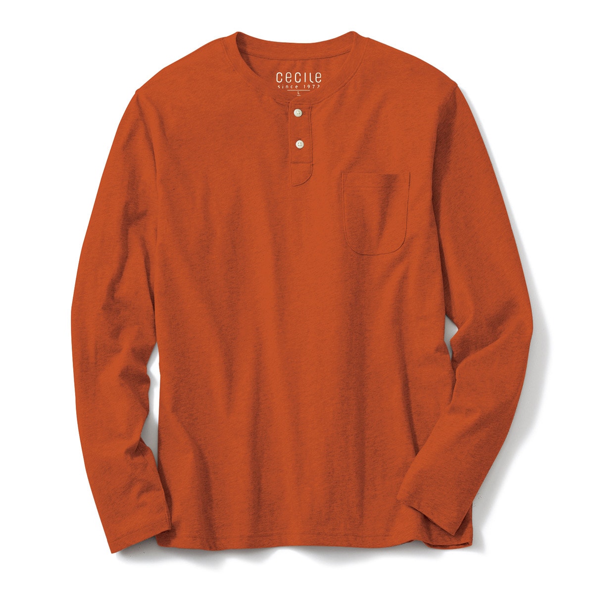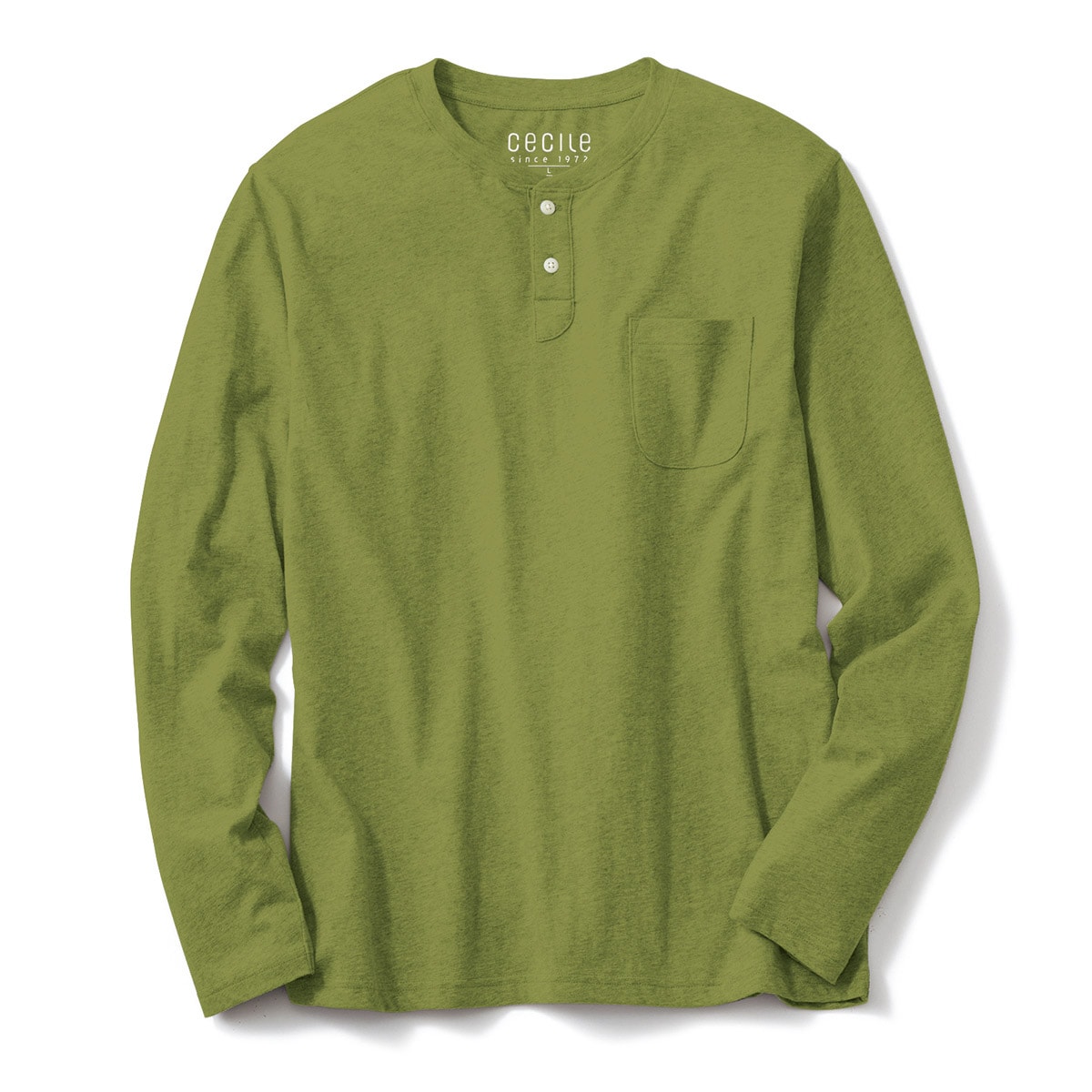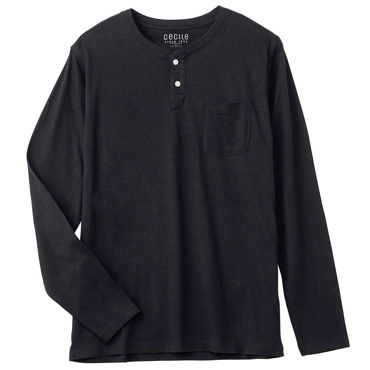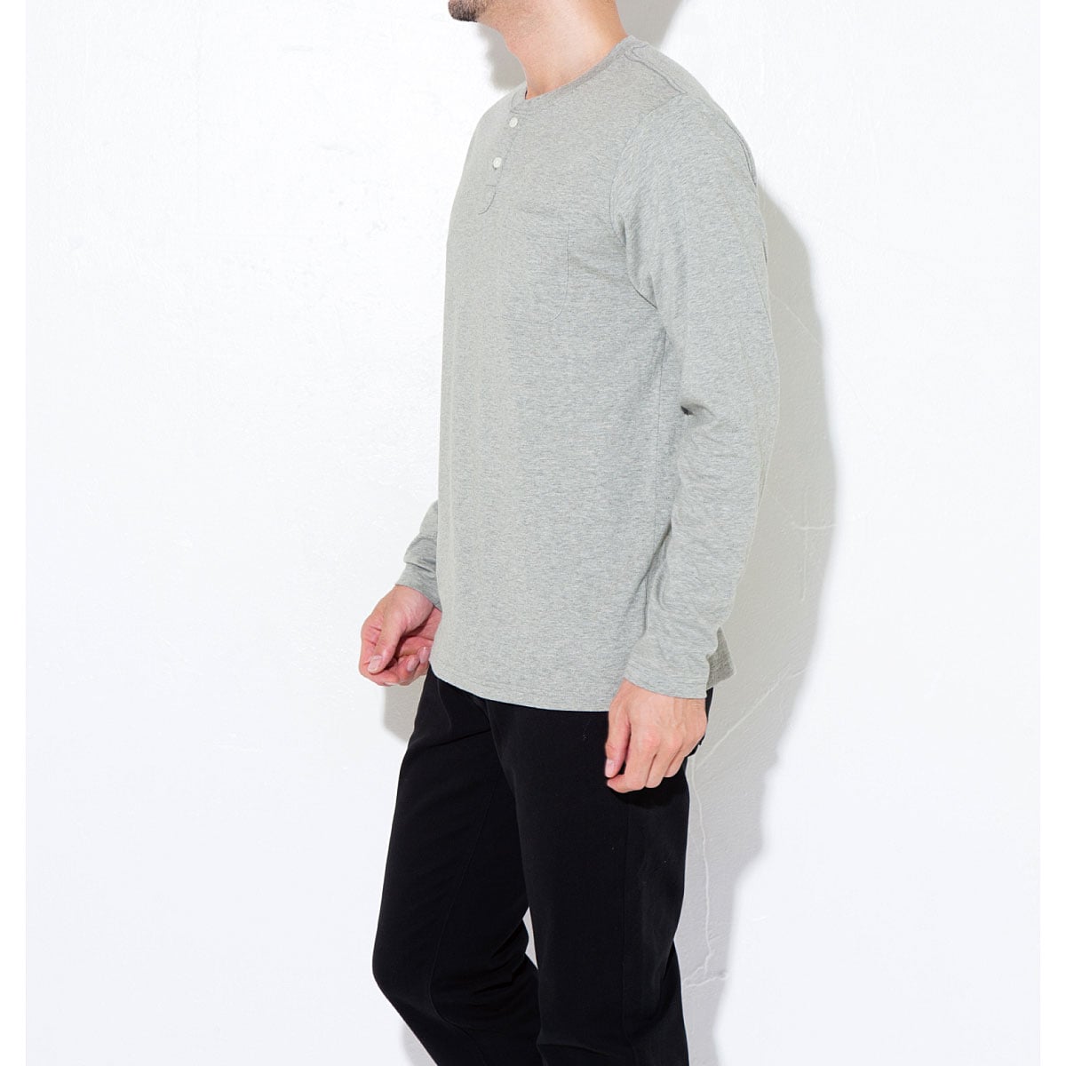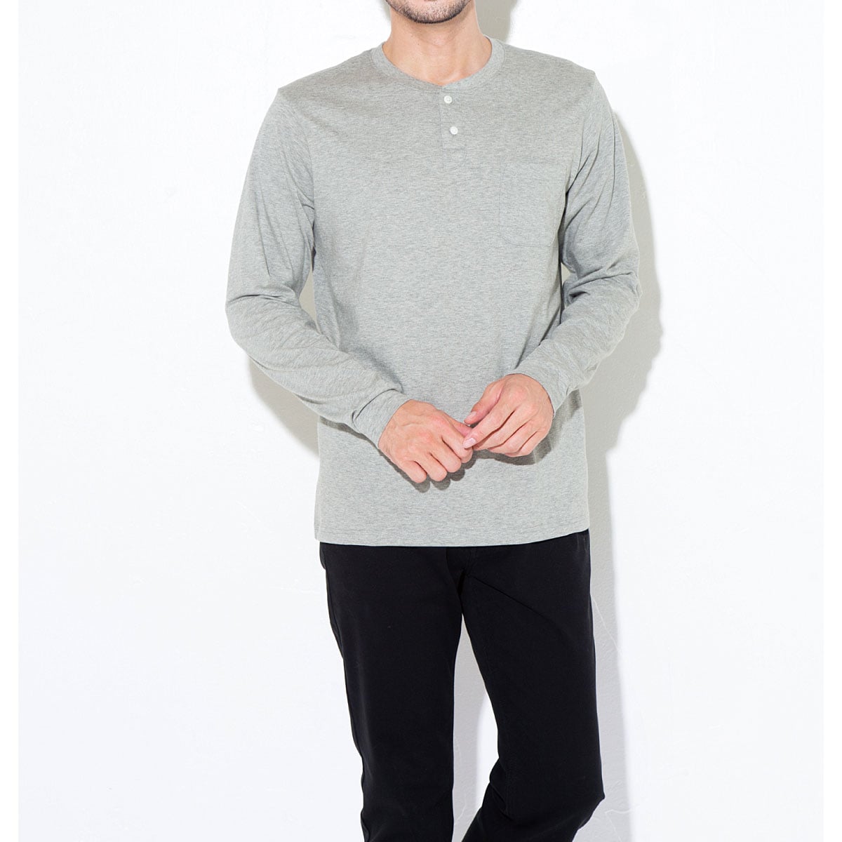 男女兼用!綿100%ヘンリーネックTシャツポケット付き・長袖タイプ