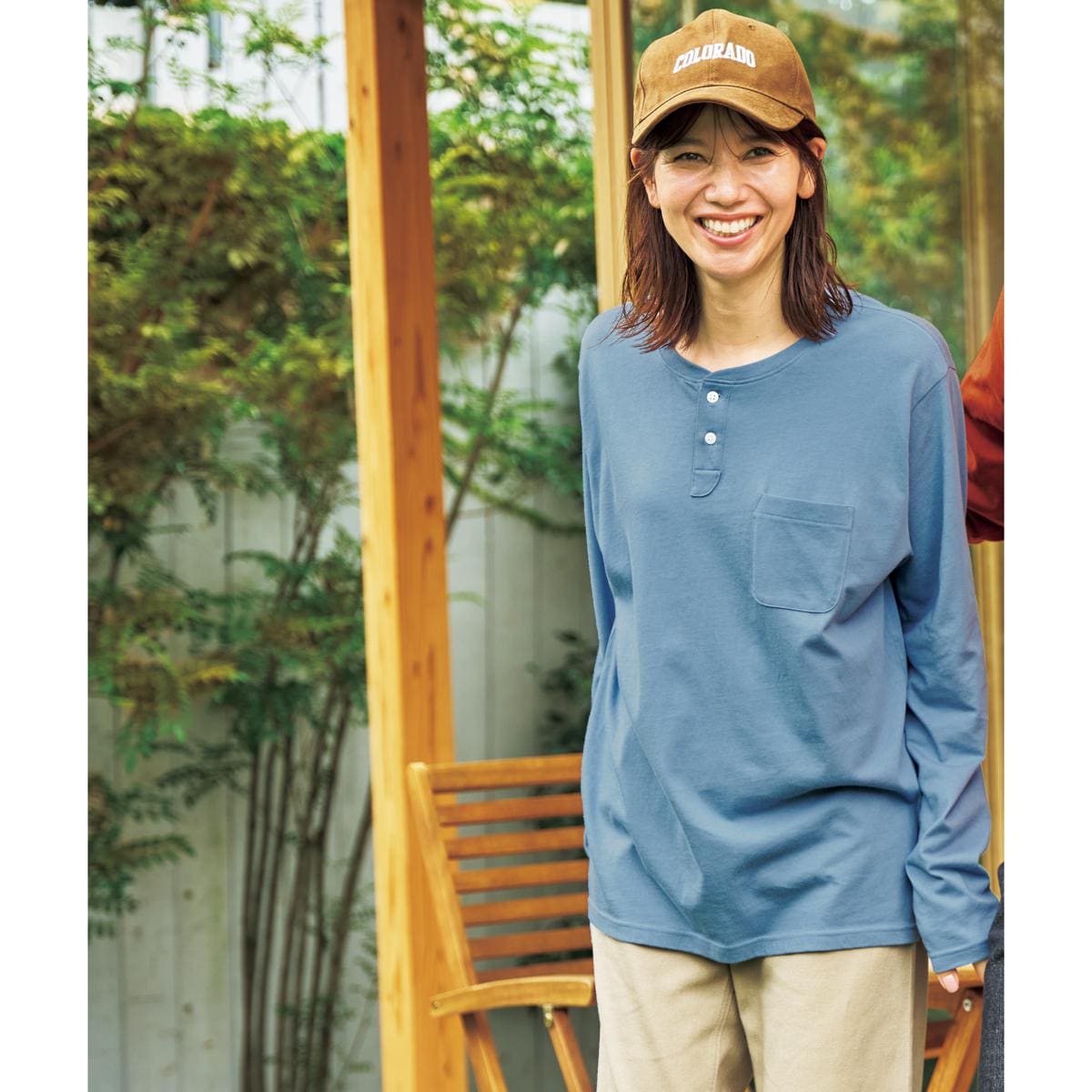 50代 / 女性 / 身長:160~165cm(普段のサイズ M)生地がやわらかい。着心地が良くとても動きやすいです。前にボタンがあることで顔周りがスッキリして見えます。