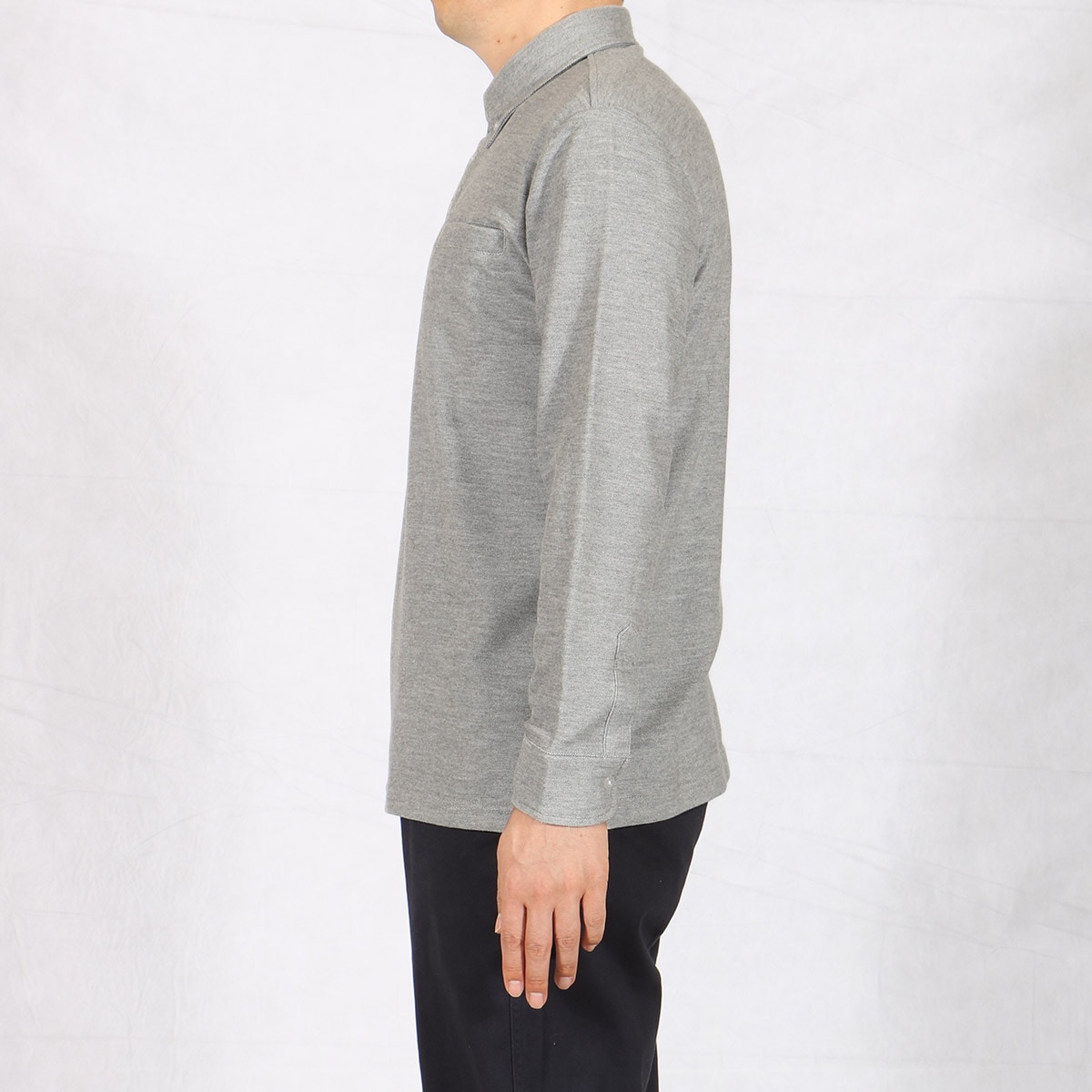 シャツに近い?きちんと感? 台衿付き&ボタンダウン仕様の上品な首まわりやカフス仕様の袖などシャツのような作り。