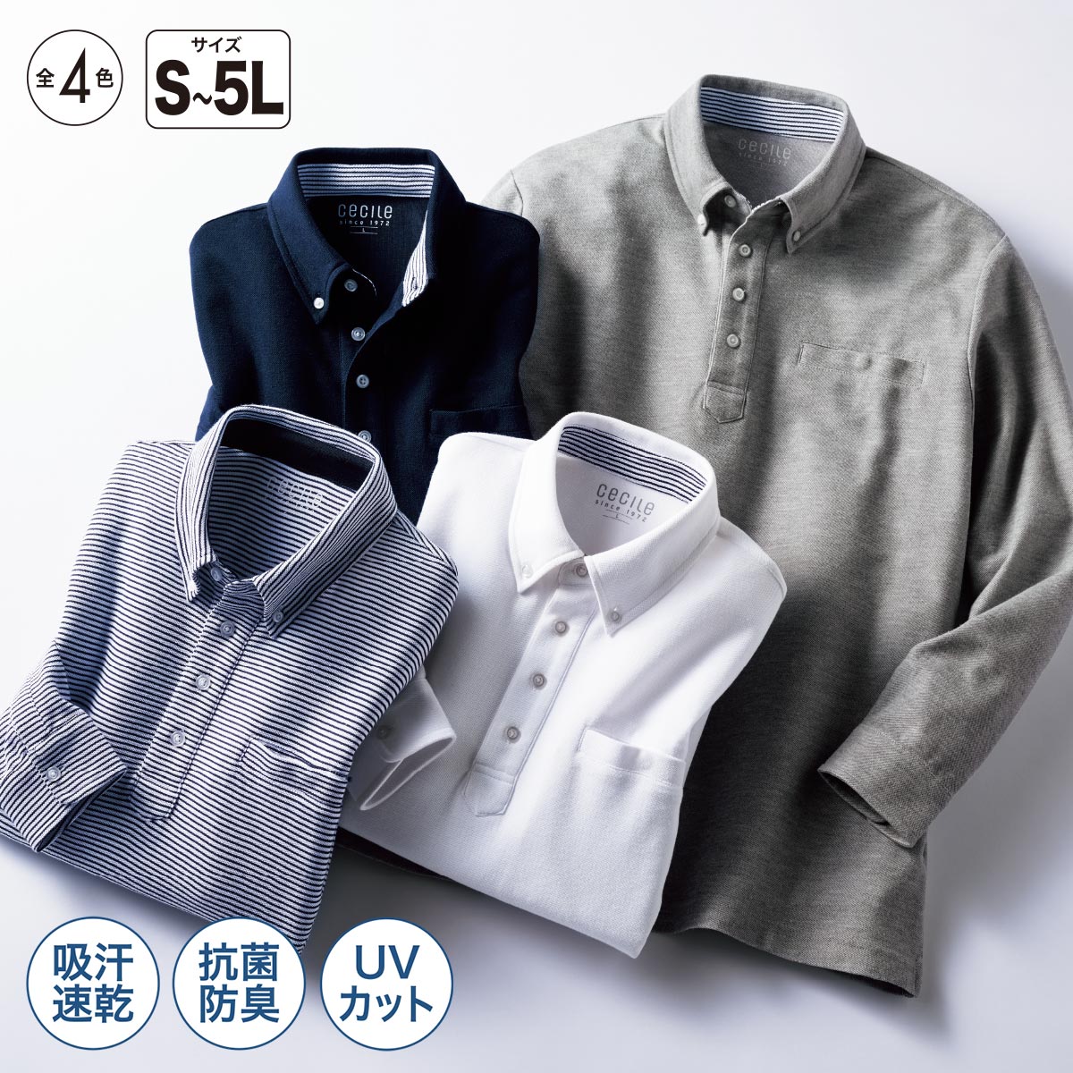ドライ・ボタンダウンポロシャツ(長袖)/吸汗・速乾・抗菌防臭・UVカット機能付き