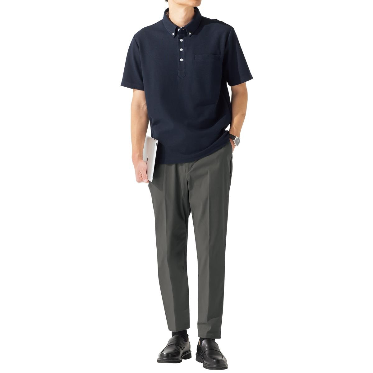 -お買い得ポイント-シャツのようなきちんと仕立てで大人見えするデザイン。そのうえ機能素材で着心地よし、スマホポケット付きで使い勝手もよしと、色々な点で『快適』なポロシャツです。-デザイン-大きめのスマホでもすっぽり収まるスマホ対応ポケットは、内側にスナップボタン付きで落としにくい仕様に。首まわりは、ボタンダウン&台衿付きのこだわりディテールで、きちんと感をプラス。-素材特徴-嬉しい多機能素材!吸汗・速乾、抗菌防臭、UVカットと、気負わず快適に着られる機能が揃っています。