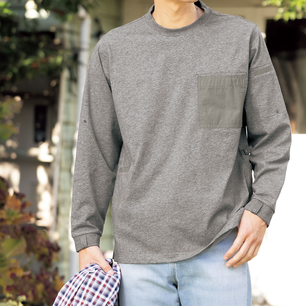 グレー(両袖はスナップボタン式のロールアップ仕様)