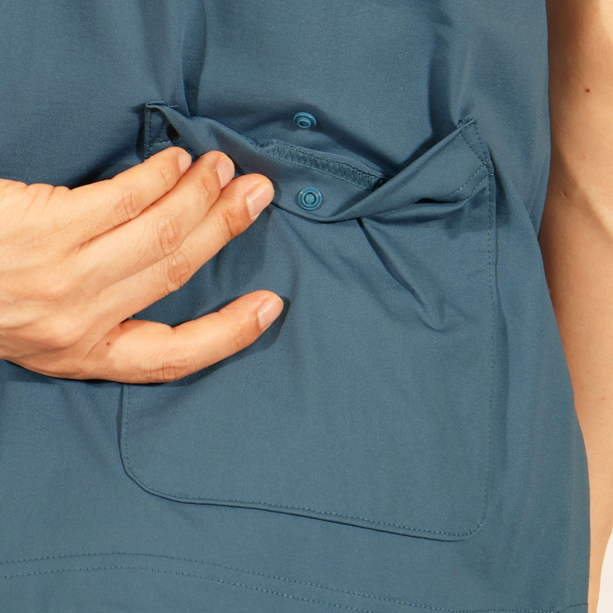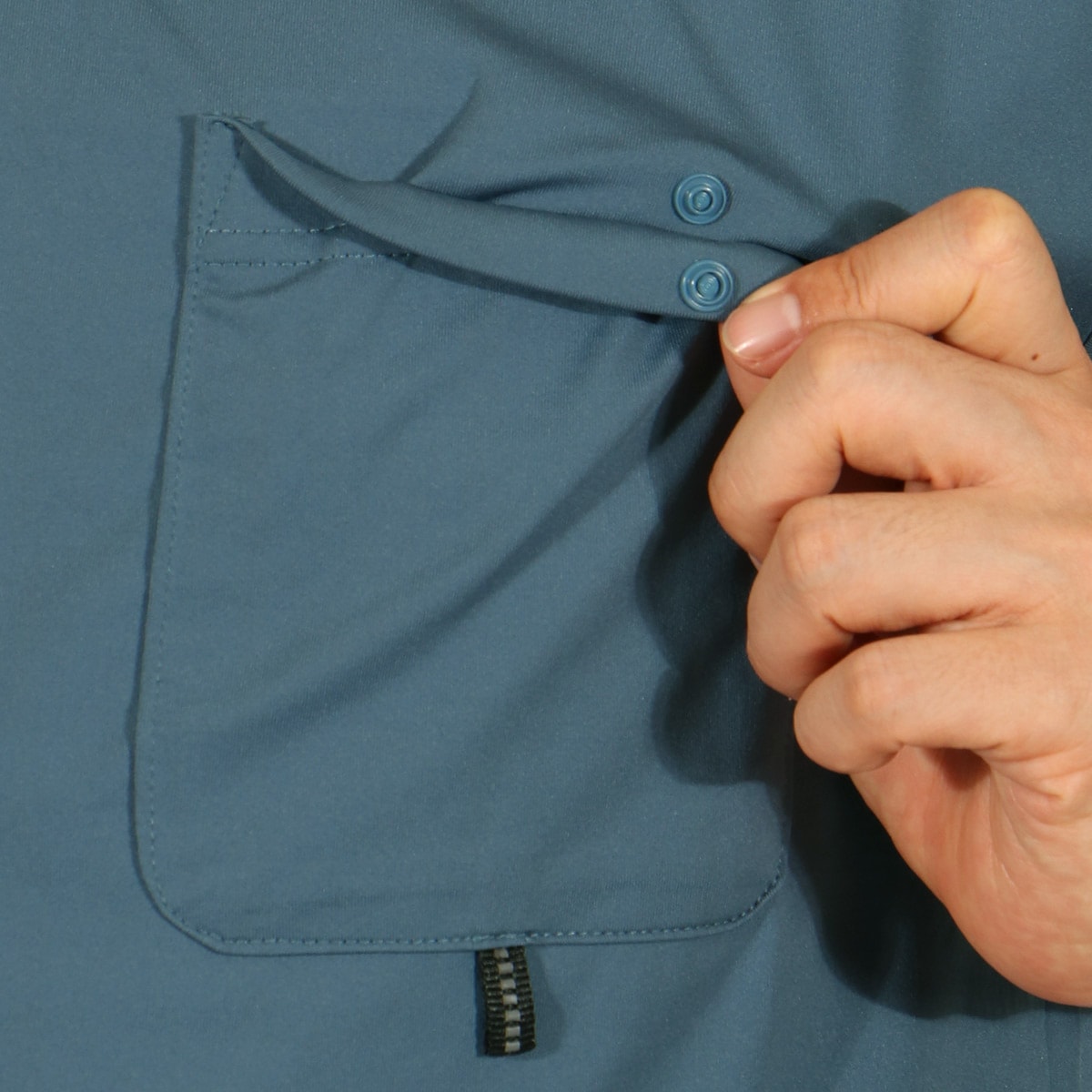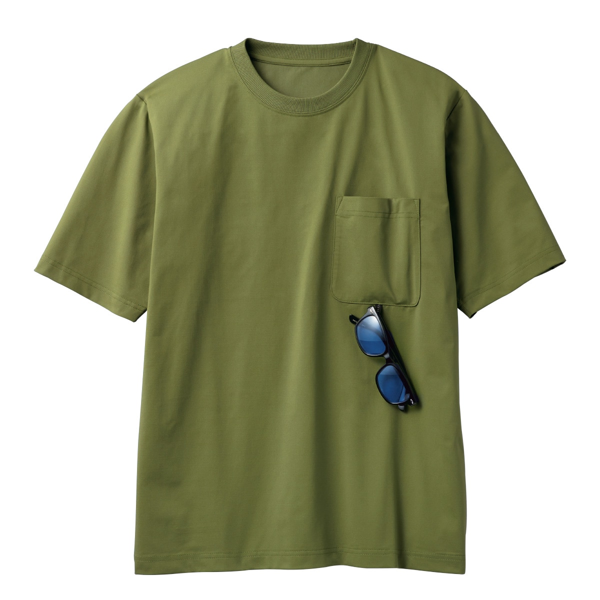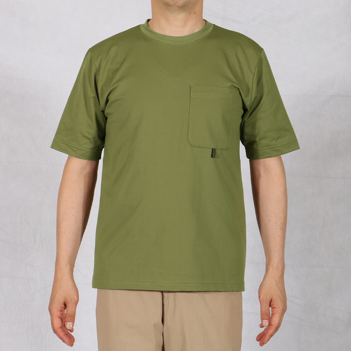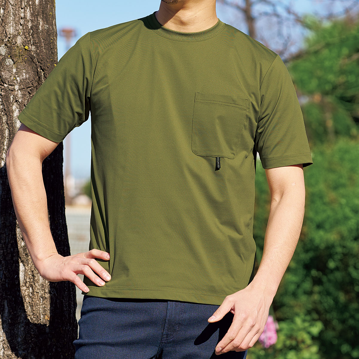 肌触りのいいスムース素材で、着心地も快適。すばやく乾くのでお手入れも簡単です。庭などで作業するときなど、虫よけ加工で虫を寄せ付けにくいTシャツ胸と背面部のボタン付きポケットが便利です。