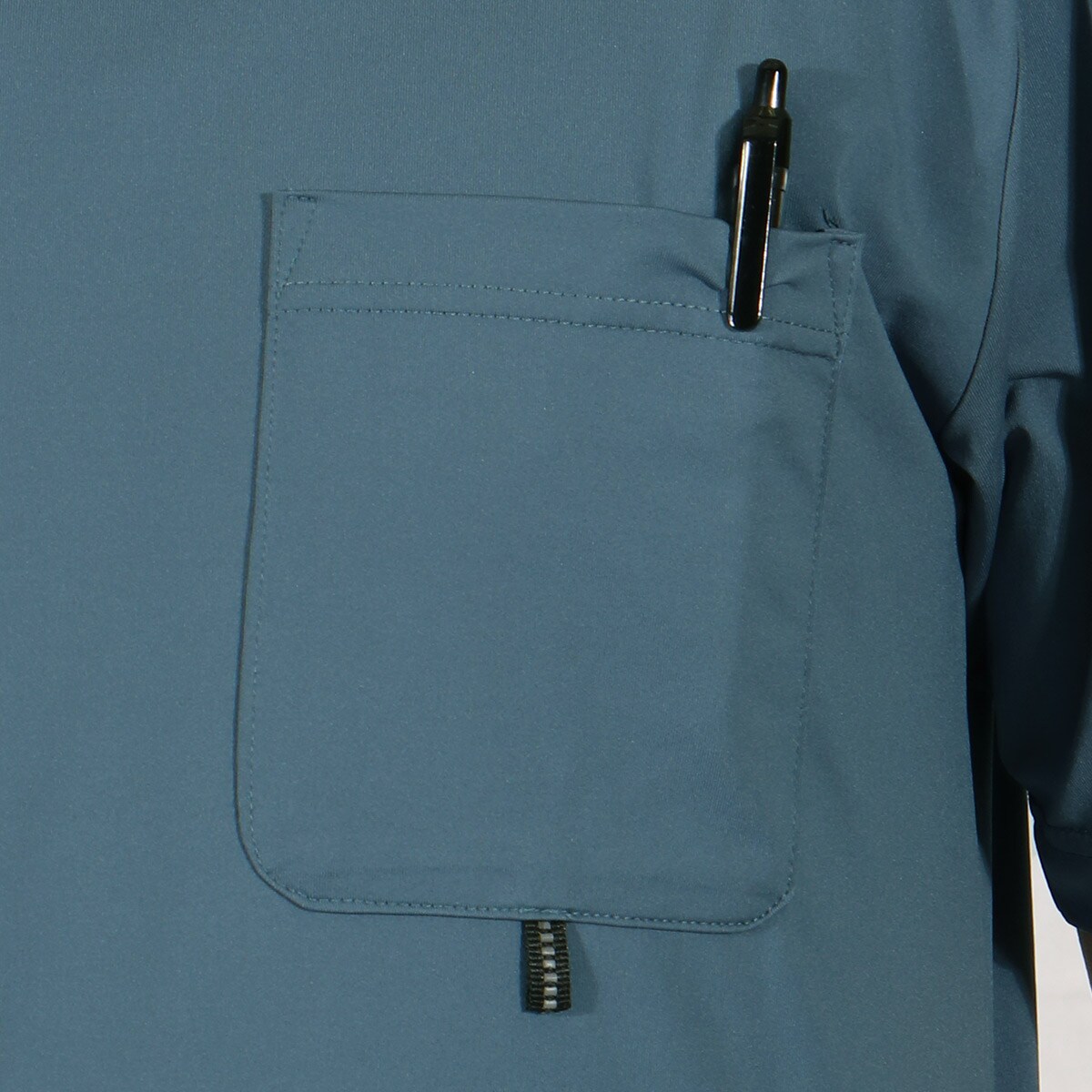 -お買い得ポイント-虫を寄せ付けにくい加工を施しているので、屋外の作業にも重宝します。-デザイン-胸と背面部のボタン付きポケットが便利。-素材特徴-すばやく乾くスムース素材でちょっとした作業にもおすすめ商品です!