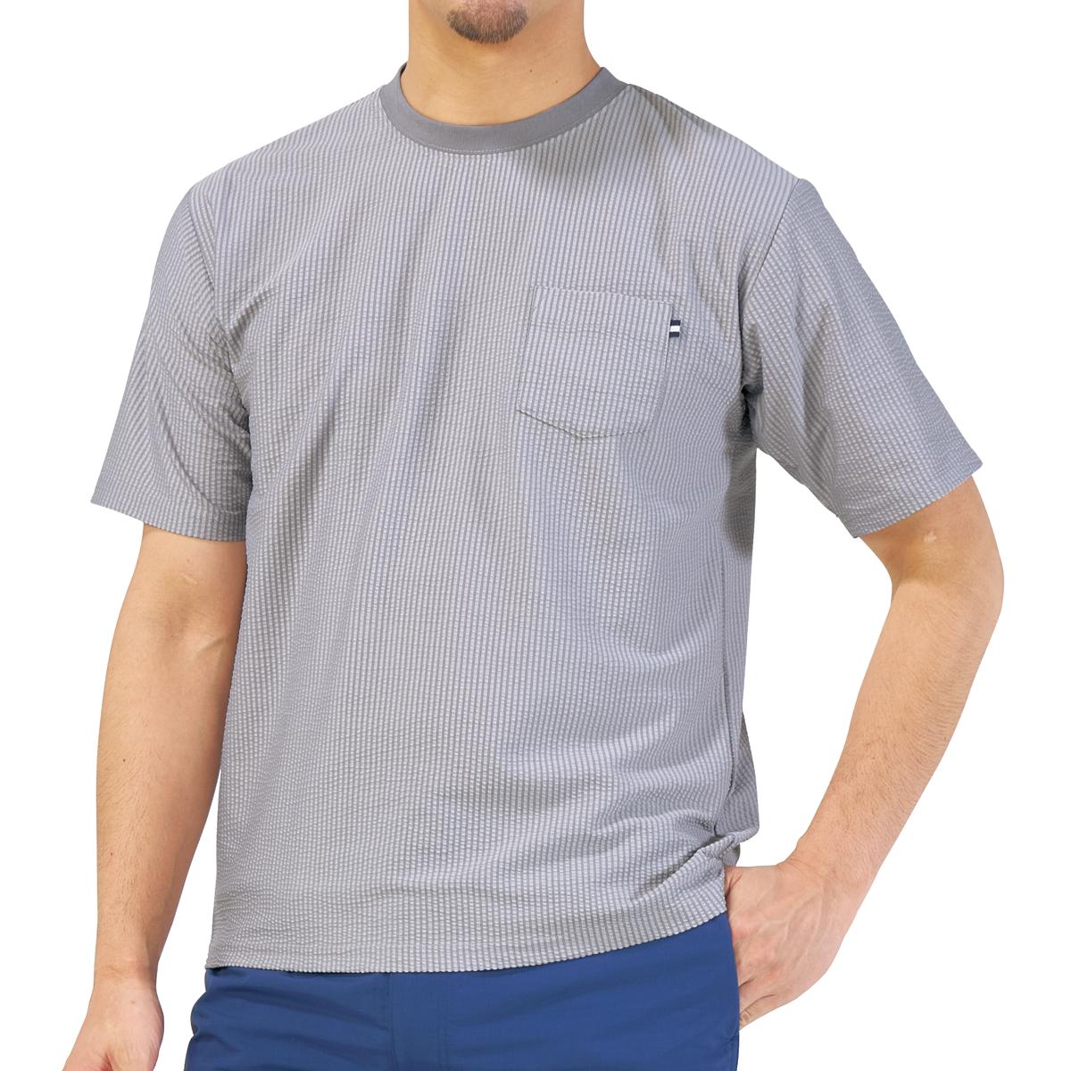 サラッと涼しい着心地がうれしいサッカー素材のTシャツ。抗菌防臭効果のあるナノファイン加工により、汗のニオイはもちろん、洗濯の生乾き臭も抑えます。