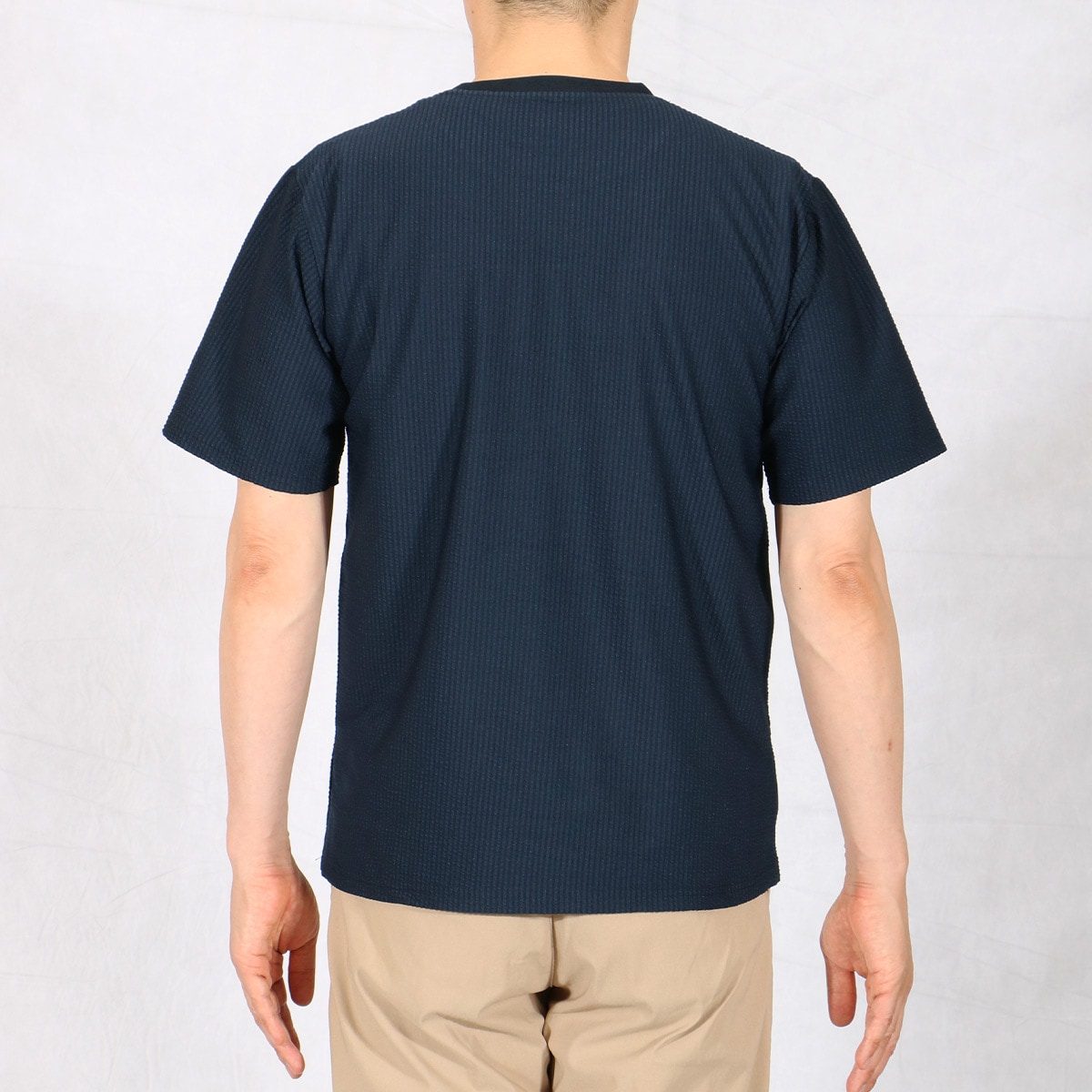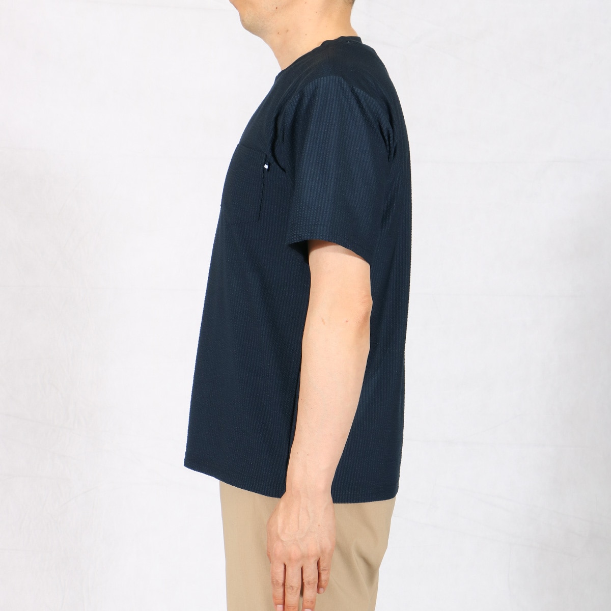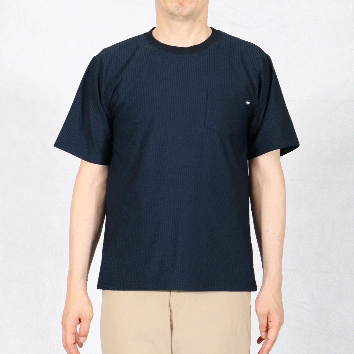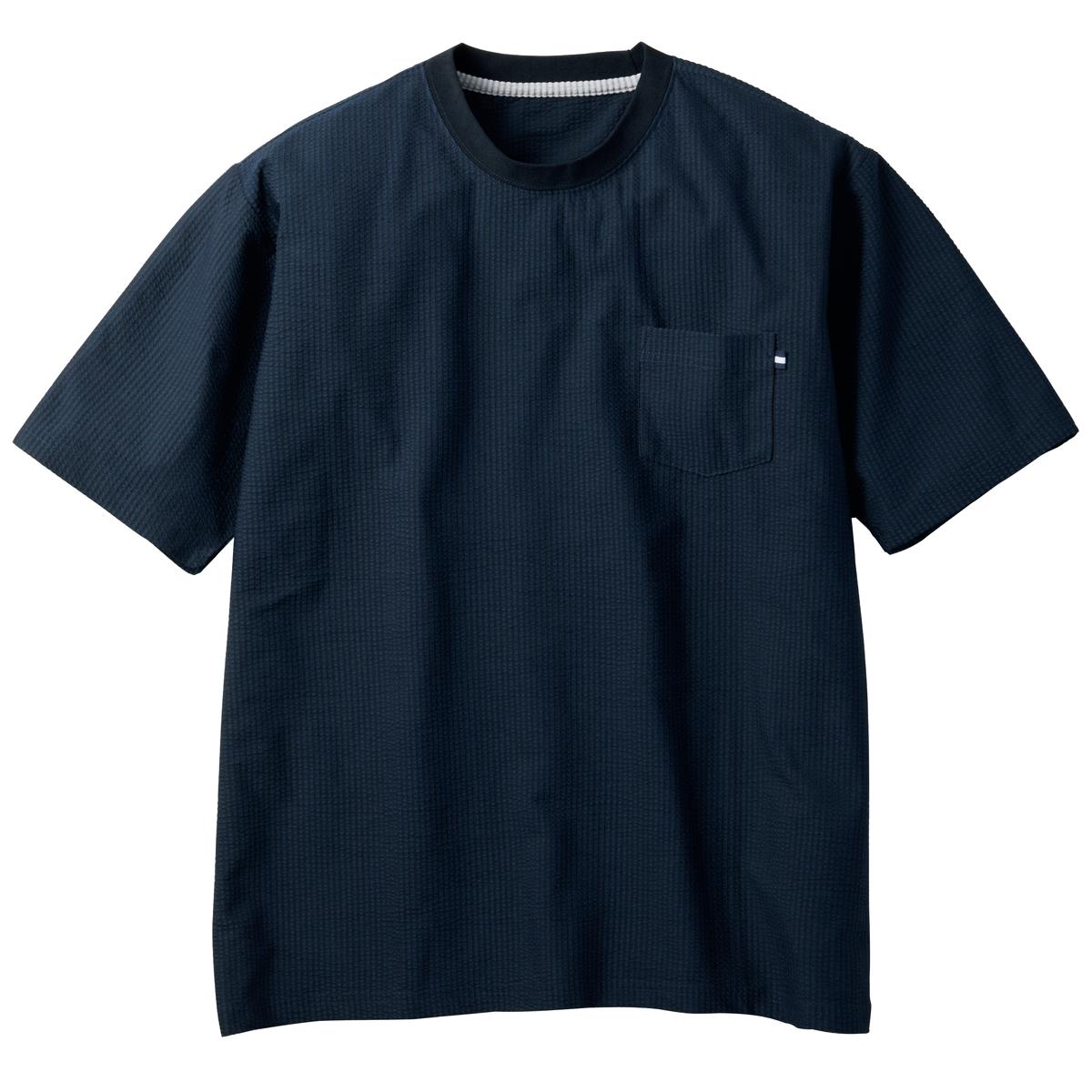 表面に凹凸のあるサッカー素材が夏らしく、肌触りも良いTシャツです。