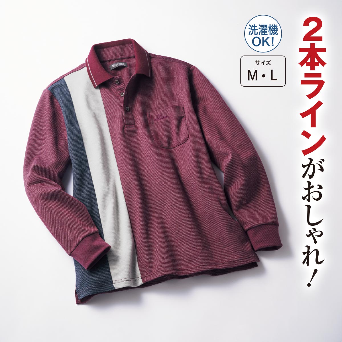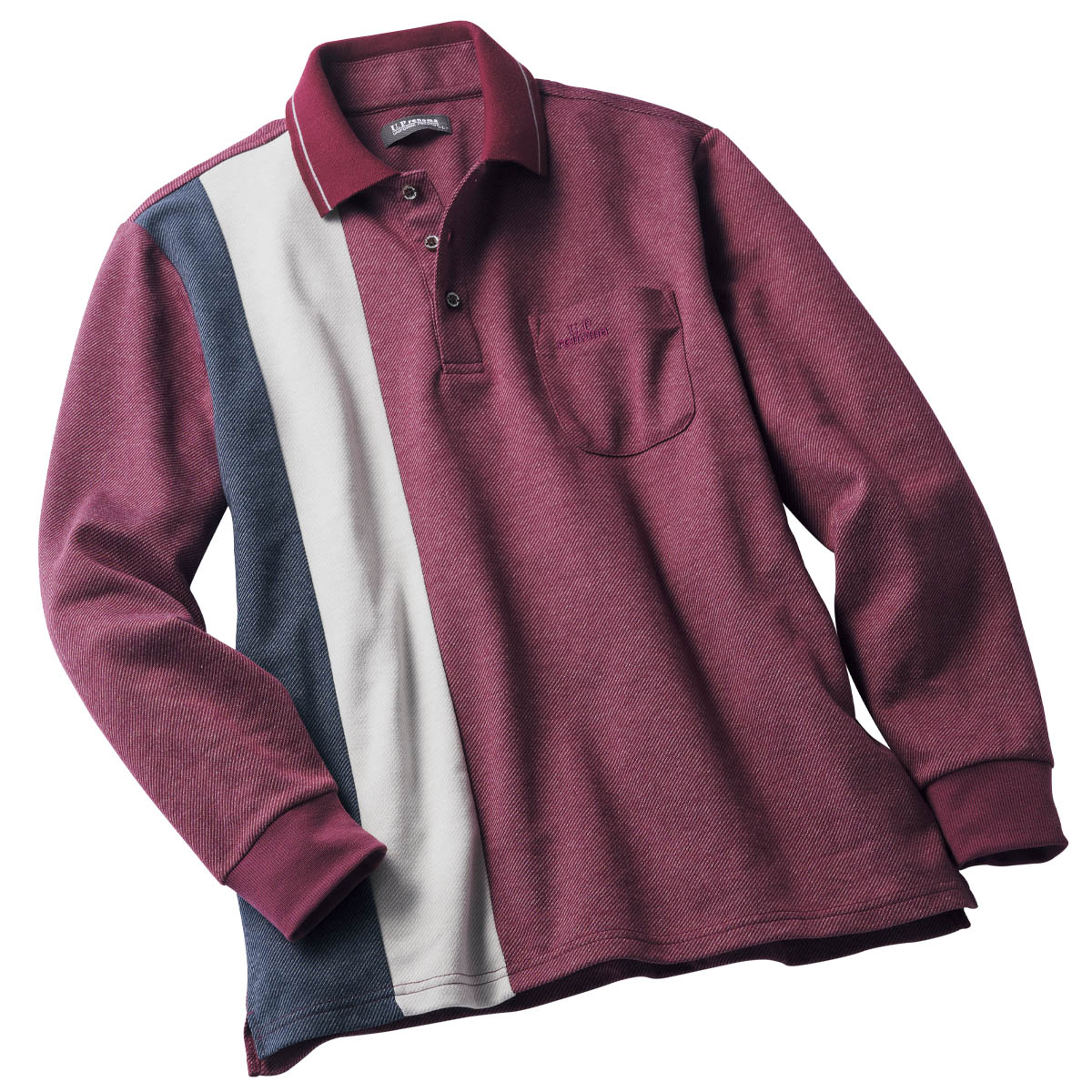 -お買い得ポイント-縦ラインの2色パネルで切り替えた存在感のあるデザインのポロ。衿はニット仕様でこなれた印象に。-デザイン-左胸にロゴ刺しゅう。生地と同色の刺しゅうがさりげなくて上品です。ボタンにもロゴ入り。ブランドならではの細部までこだわりました。目を引く色使いがおしゃれ!-素材特徴-身生地は、綿混紡素材。洗濯機で丸洗いできるのもうれしいポイントです。