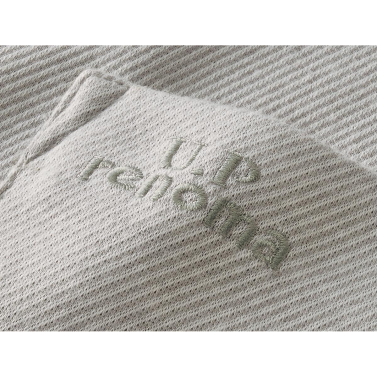 左胸にロゴ刺しゅう生地と同色の刺しゅうがさりげなくて上品。