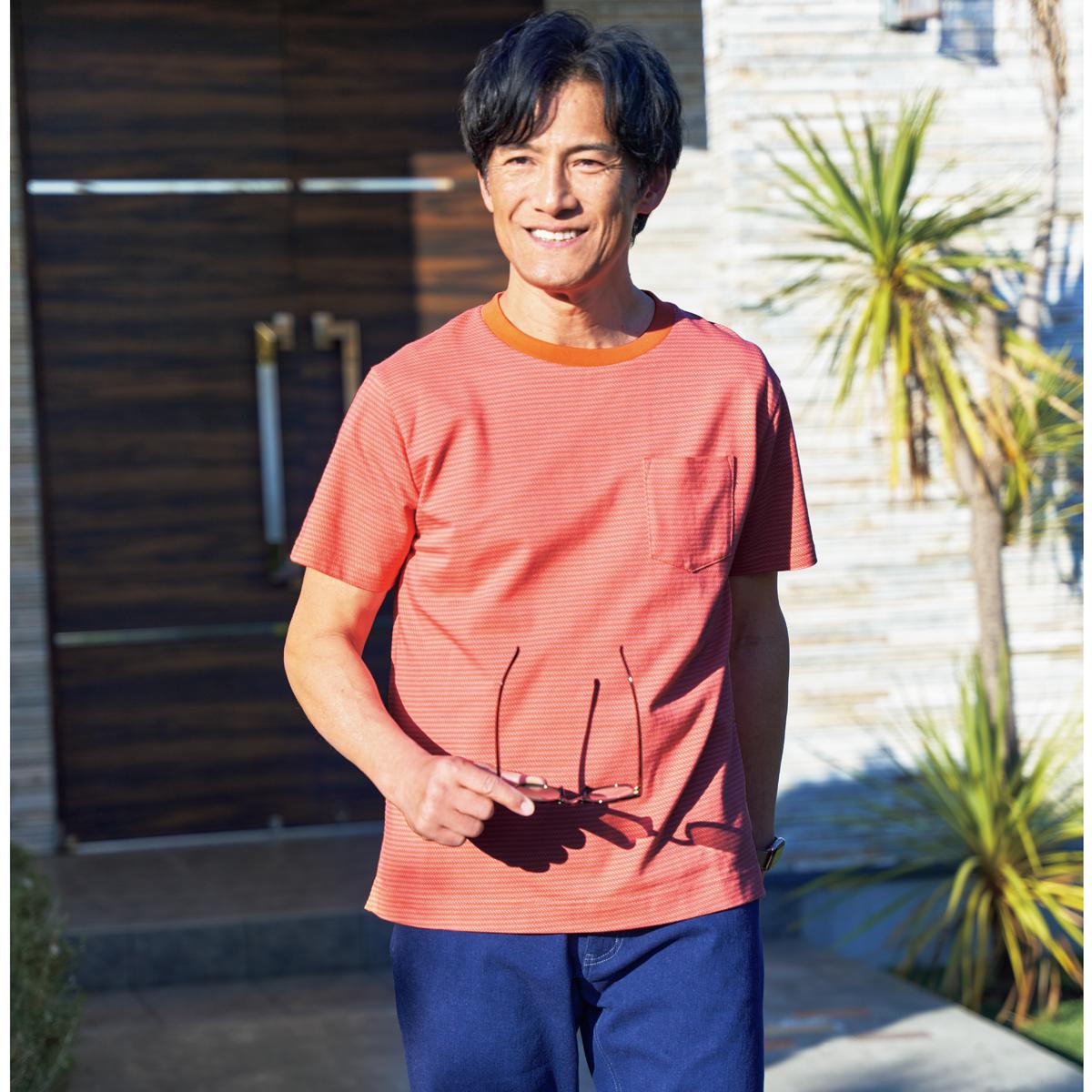 ジャカードボーダーポケット付きTシャツ(半袖)