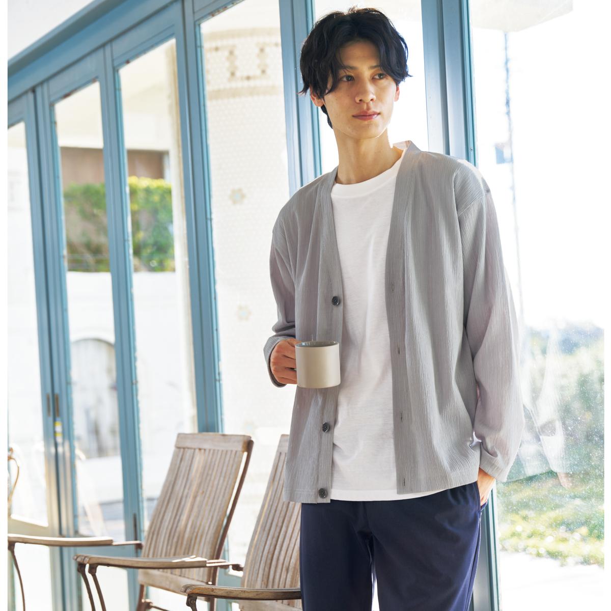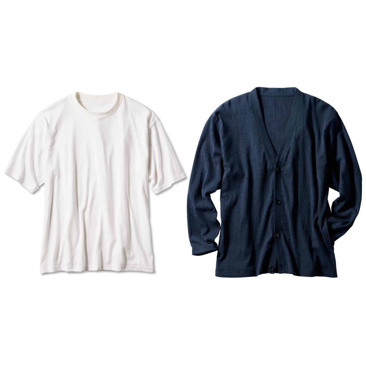 -お買い得ポイント-カーディガンにTシャツがセットされているので、コーデに悩む必要ナシ。-デザイン-軽くて涼しいカーデにTシャツをセットで!カーデはVネックなので、首回りがスッキリとした印象に。-素材特徴-凹凸があり肌に接する部分が少ない楊柳素材は、清涼感があり夏にピッタリ。