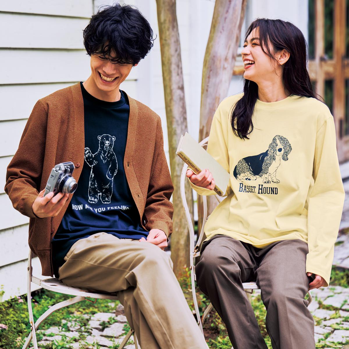 -お買い得ポイント-朝晩の肌寒さにちょうどいい。1枚でも重ね着でもサマになる頼れるロンT。-デザイン-味のあるイラストがセンスを語るコーデが楽しくなるプリント柄。-素材特徴-柔らかい綿100%天竺素材、プラス抗菌防臭加工で匂いを防ぐ。