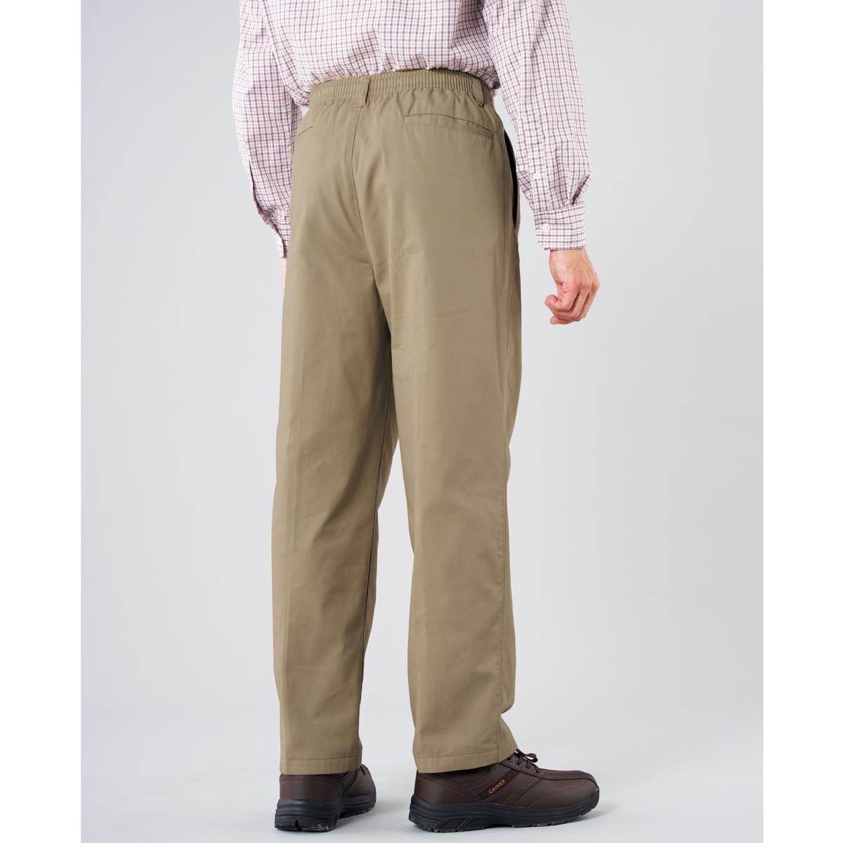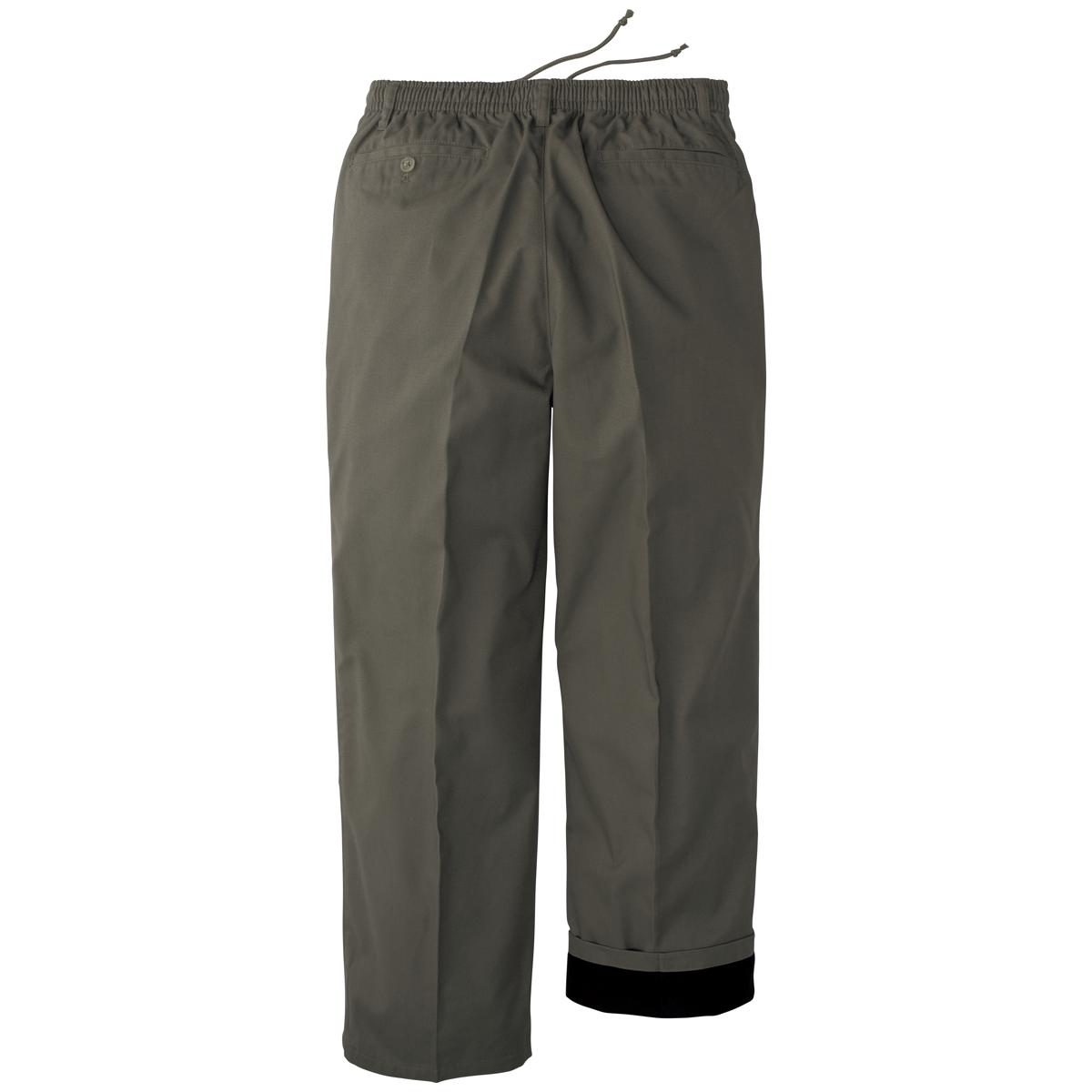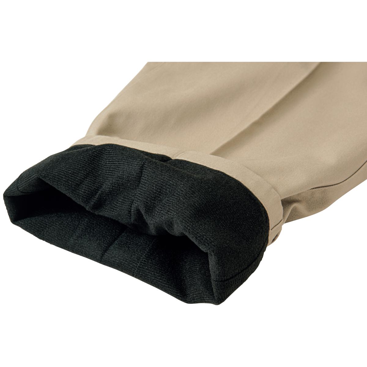 【裏暖パンツ】伸縮性と通気性に優れた暖かいトリコット素材を裏地に使用したパンツ。ウエストは一周ぐるりとシャーリングになっていてらくらくの履き心地!