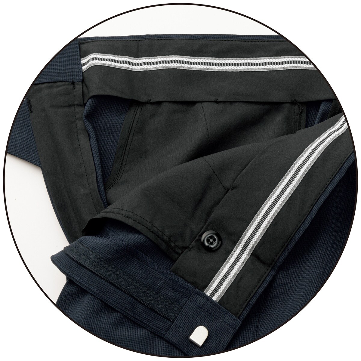 滑り止めテープ内側にシャツのずり上がりを防ぐシリコンテープ付き。
