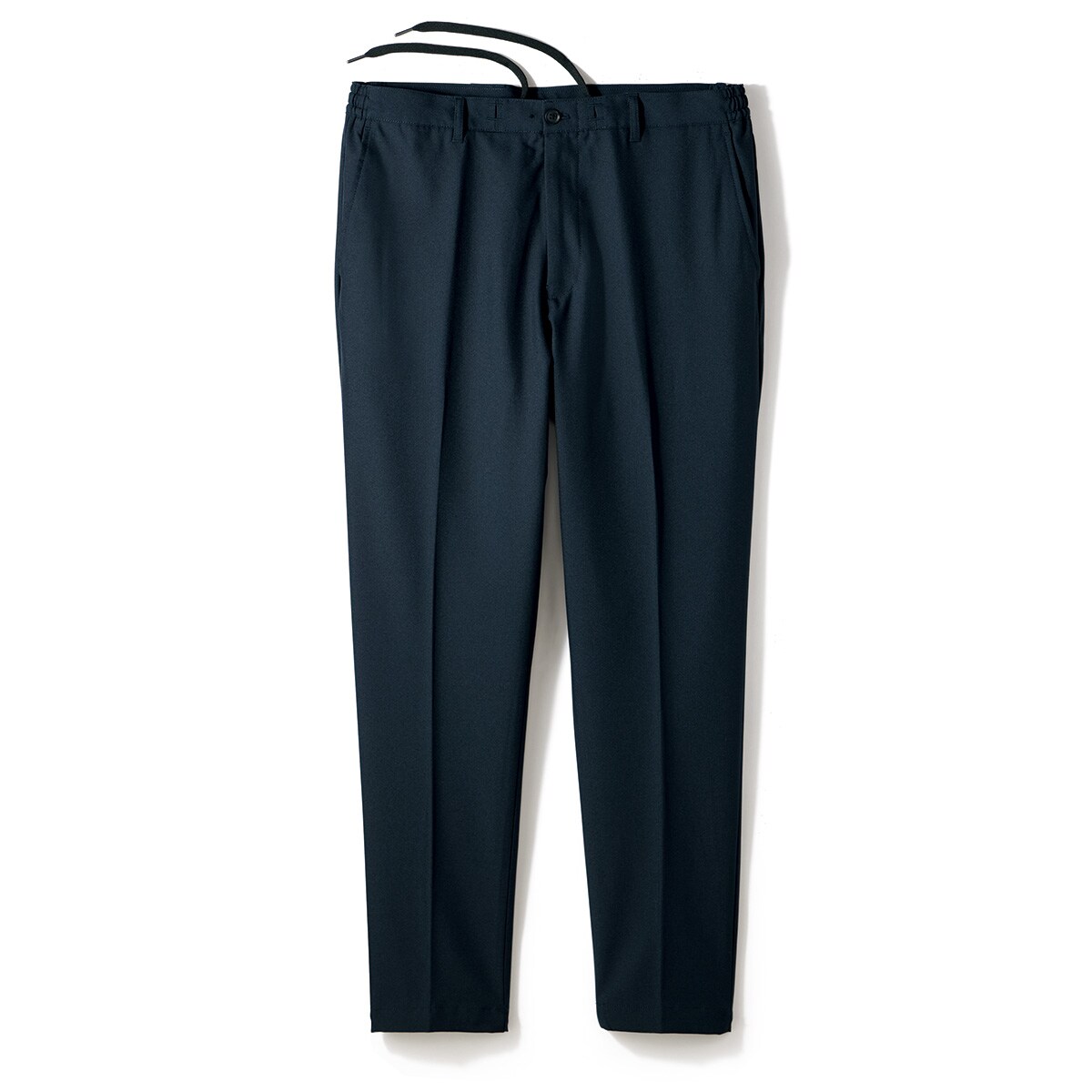 -お買い得ポイント-サイドシャーリングでウエストがラク。ひも付きでベルトいらずの洗えるパンツです。-デザイン-おなか周りがラクなサイドシャーリング。ウエストひもは内側に入れてすっきり見せ、外に出して楽に結べる2WAY仕様。後ろ左右ボタン付きポケット。-素材特徴-耐久性が非常に高く、シワになりにくい。ほどよいヨコストレッチ素材で動きやすい。