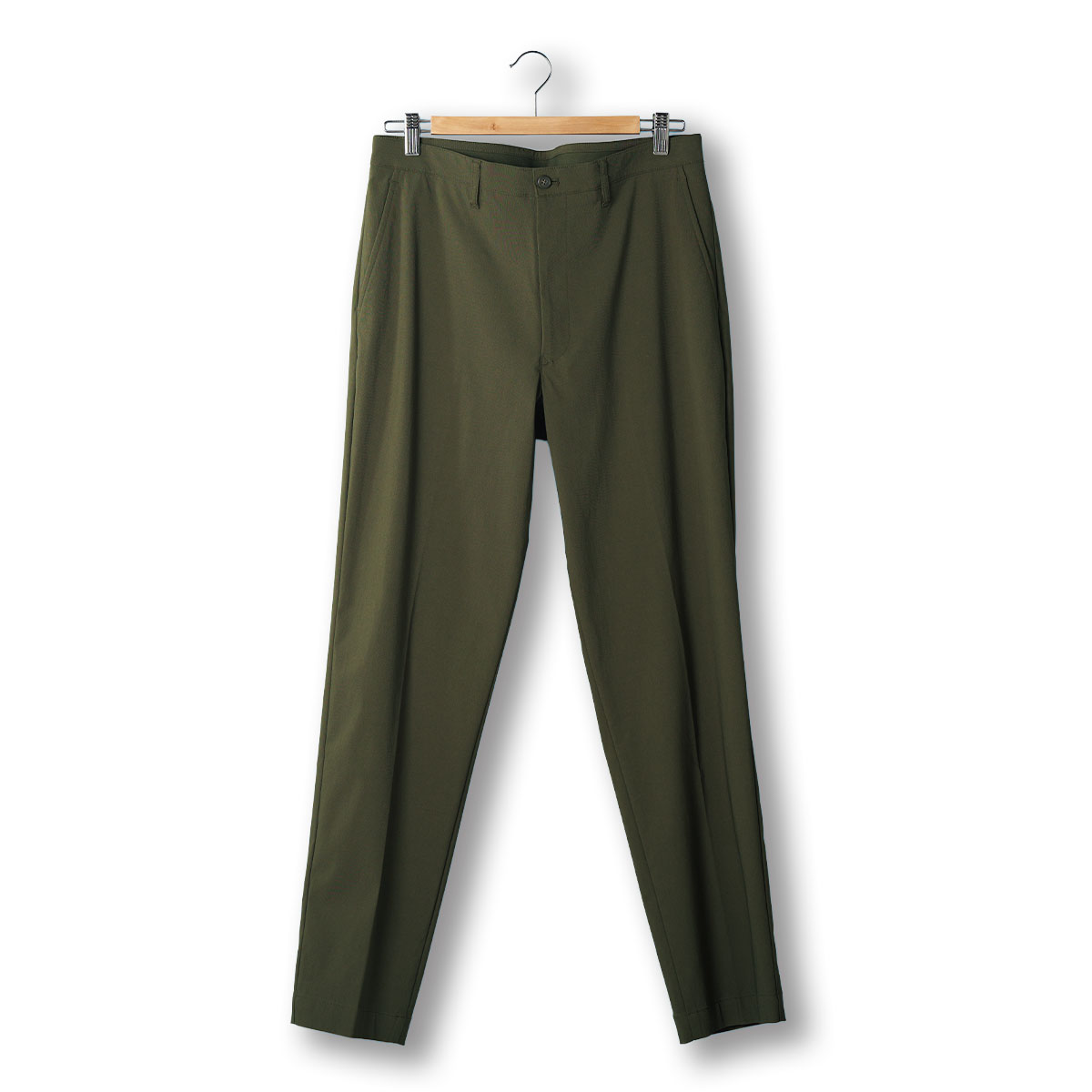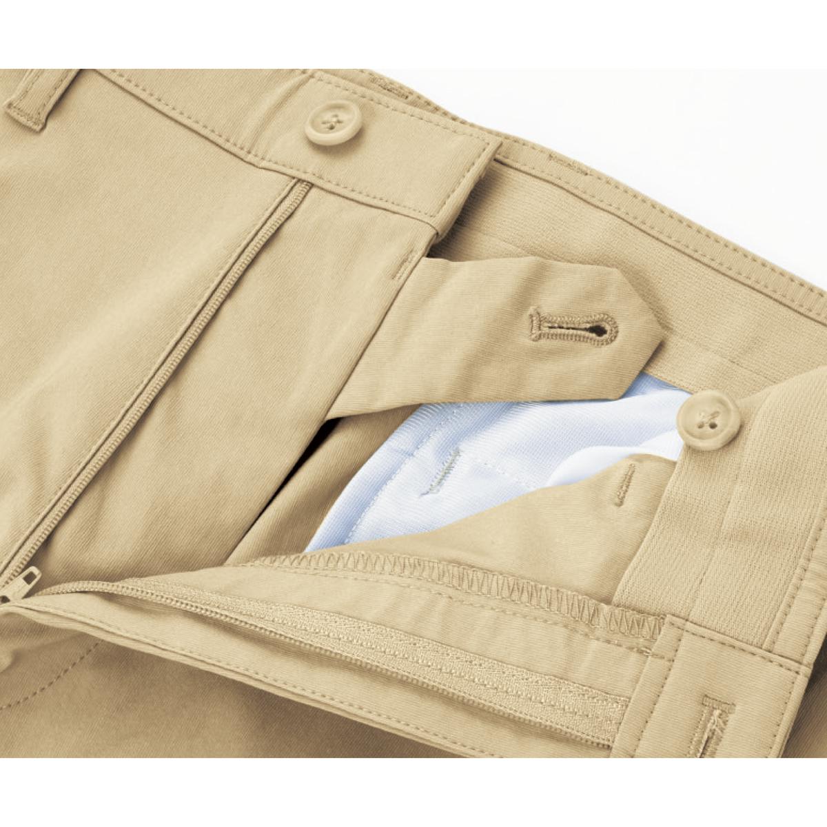 上質スラックスにも使われる「内掛けボタン」を採用。