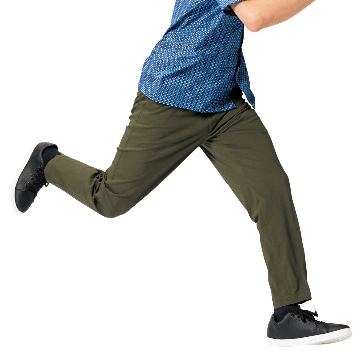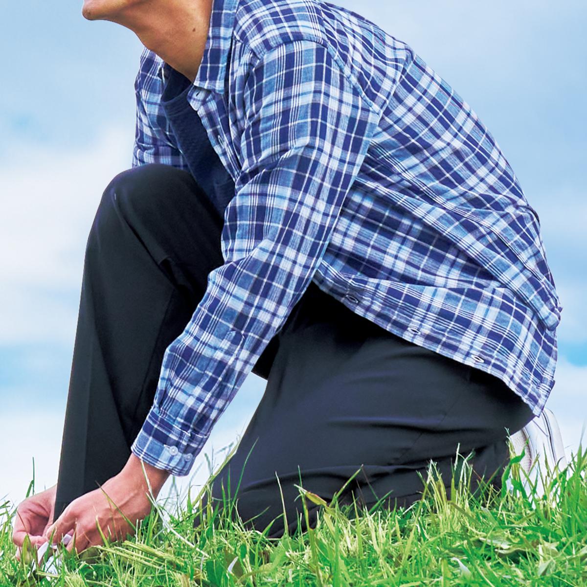 伸縮性のある生地だから膝の曲げ伸ばしがラク。