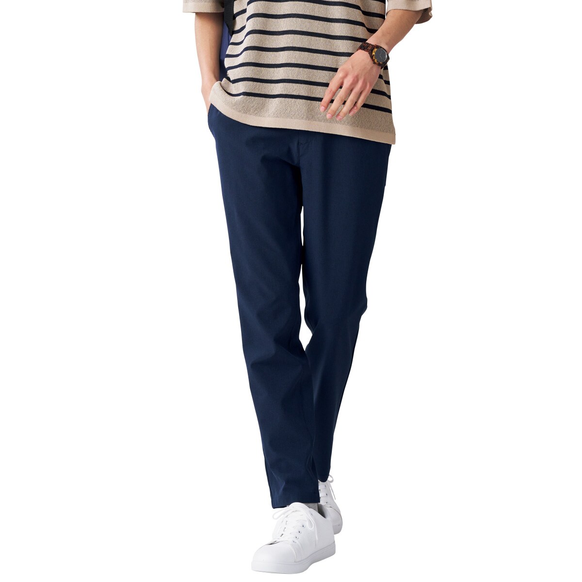 -お買い得ポイント-キレイ目スタイルにおすすめ。ガンガン動けるストレッチ!!旅をもっとアクティブに。-デザイン-しっかり伸びるストレッチ機能に加え、ウエスト内にゴムを内蔵しているのでウエスト部分までストレッチでラクラクです。-素材特徴-肌離れの良い小さな畝のあるピケ素材。またレーヨン混の滑らかな風合い、接触冷感機能付き!