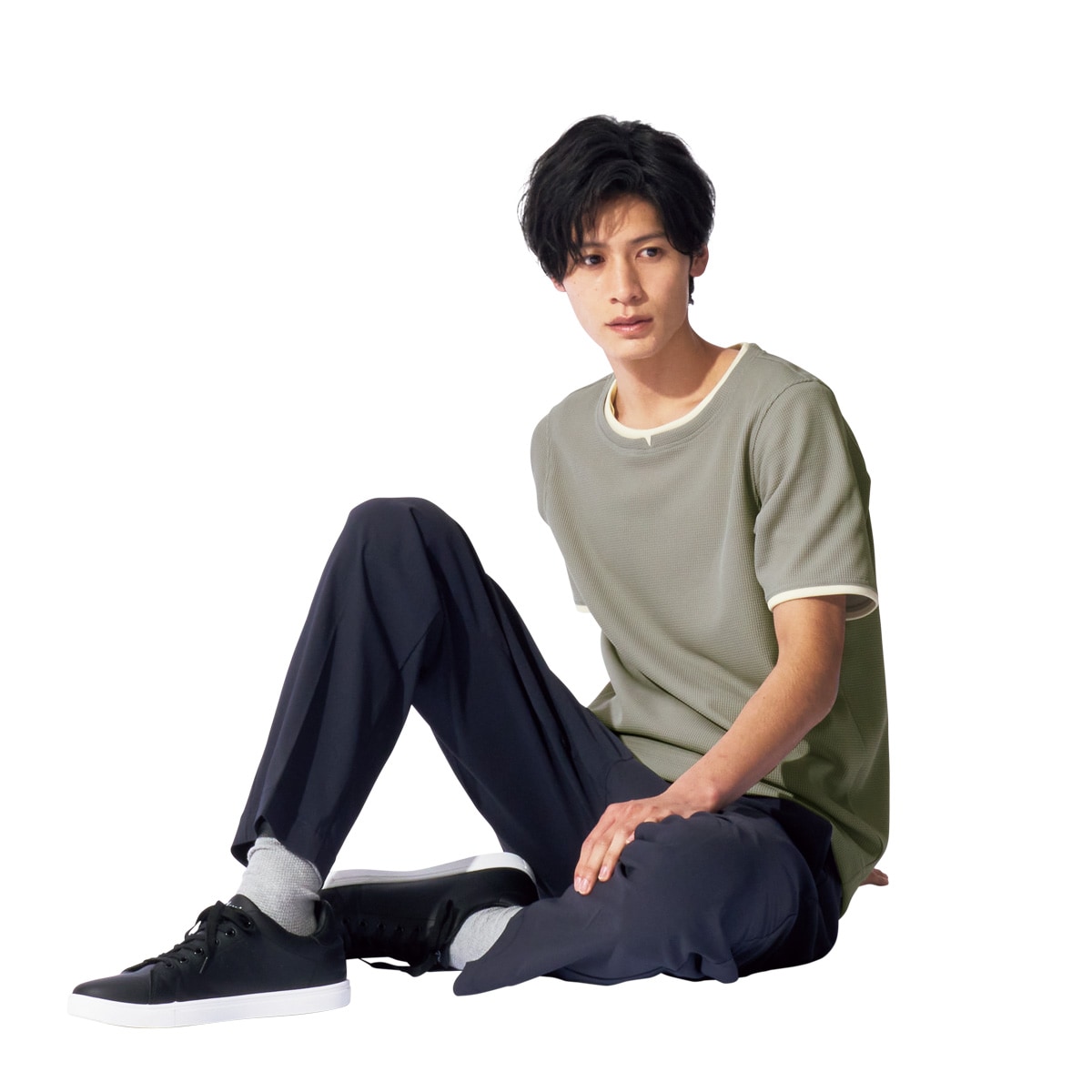 やわらかいピケ素材が心地いい穿き心地接触冷感・ウエストストレッチパンツ。