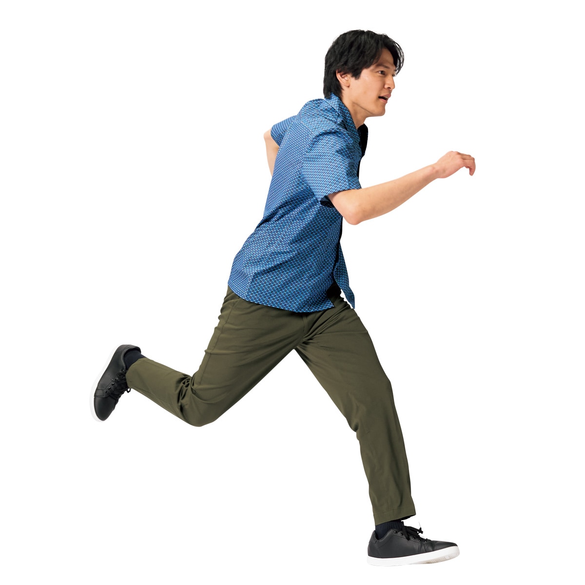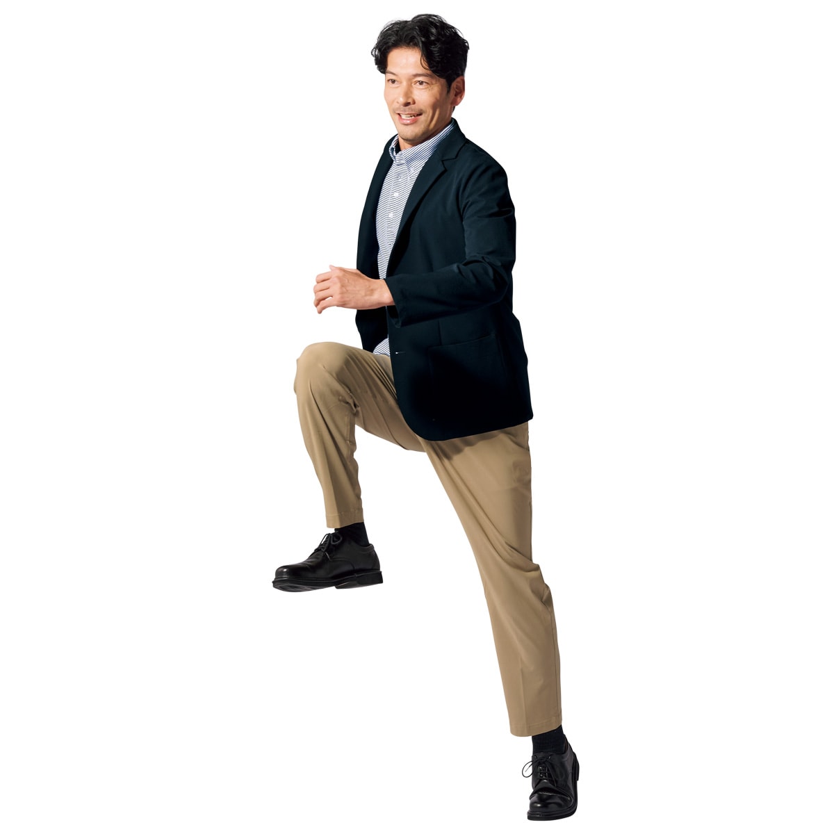 伸縮性のある生地だから膝の曲げ伸ばしがラク。