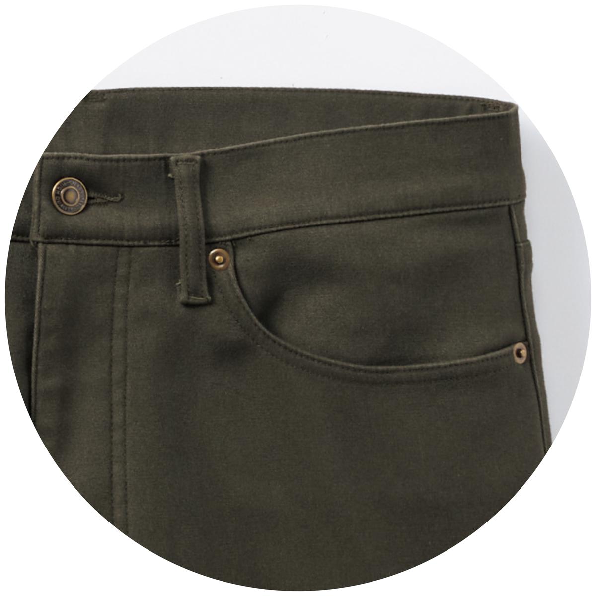 -お買い得ポイント-腰まわりはサイズ感をはきやすく改良しました!-デザイン-ウエスト前開き仕様。ポケットが前後にたくさんついているのもうれしいポイントです。-素材特徴-表地は、柔らかく伸びのよい素材。裏地は目の細かいなめらかな起毛素材で心地いい肌ざわり。