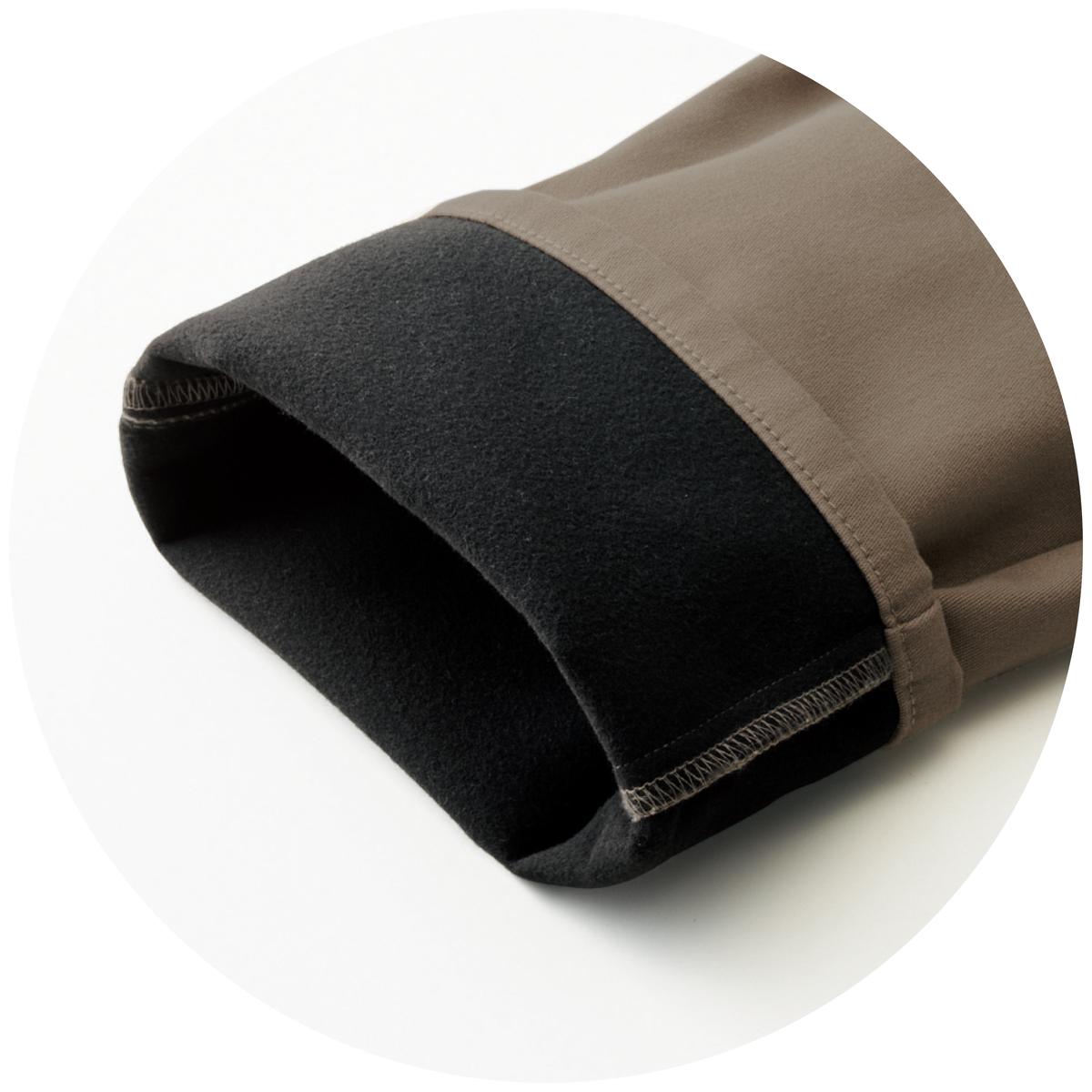 裏面ボンディングした目の細かいなめらかな起毛素材で心地いい肌ざわり