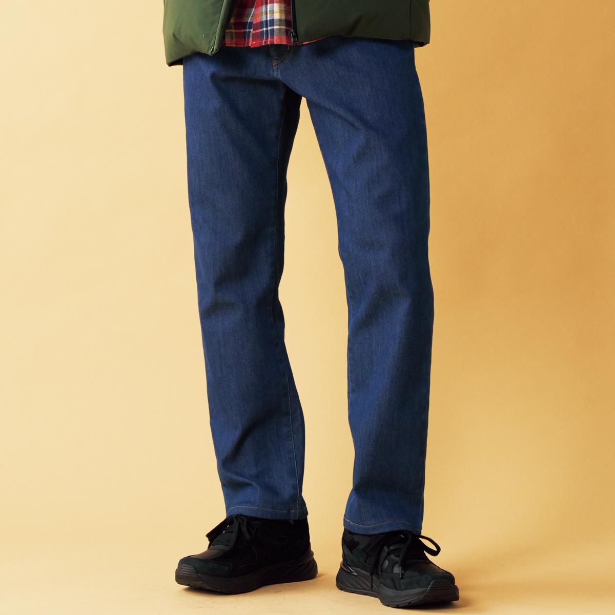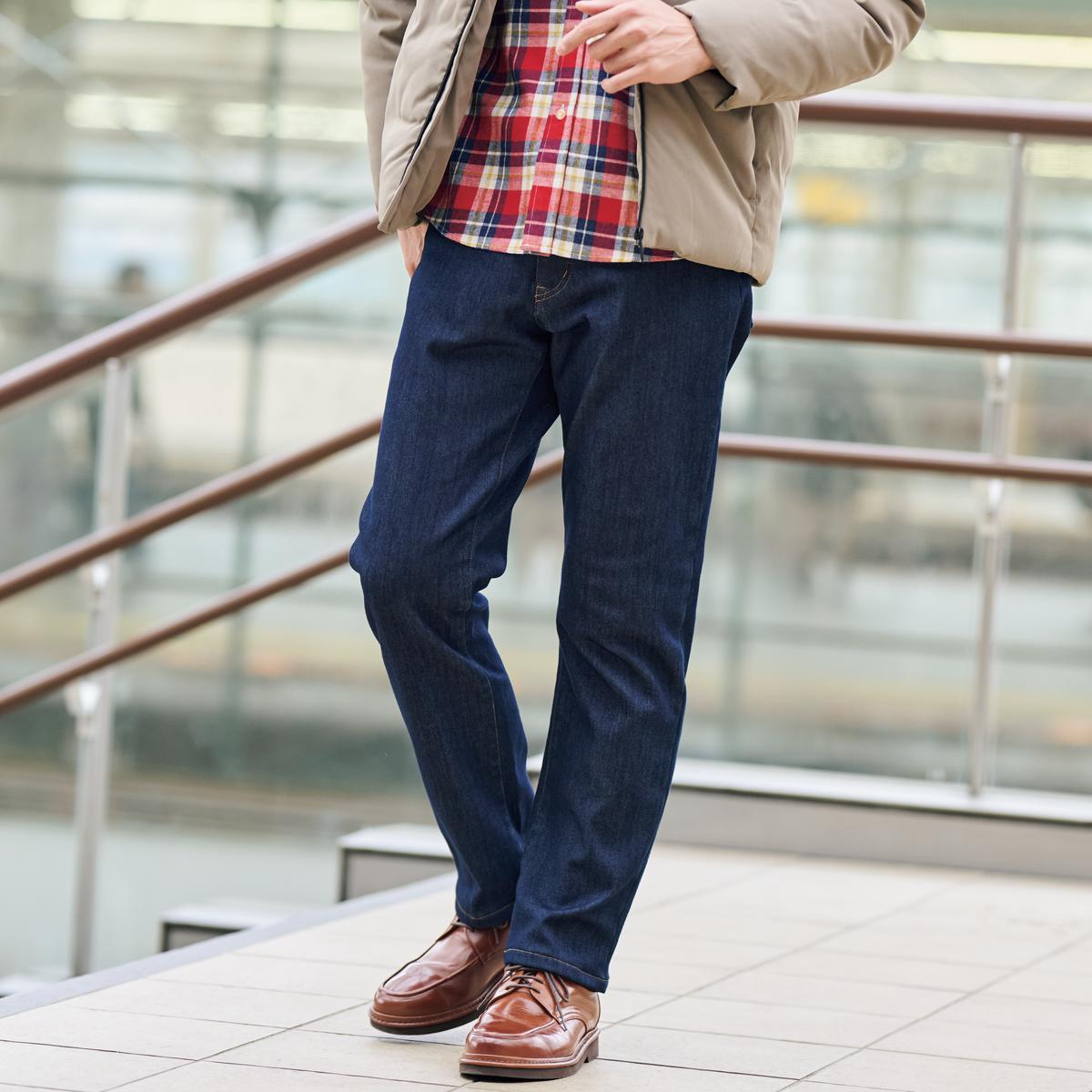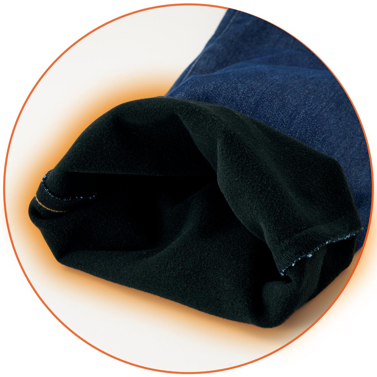 -お買い得ポイント-ふつうのジーンズに見えてあったかいのが嬉しい!-デザイン-ウエストは前開き仕様。前後左右にポケットがついているのもうれしいポイントです。-素材特徴-表地は、柔らかく伸びのよい素材。裏地は、目の細かいなめらかな起毛素材で心地いい肌ざわりです。