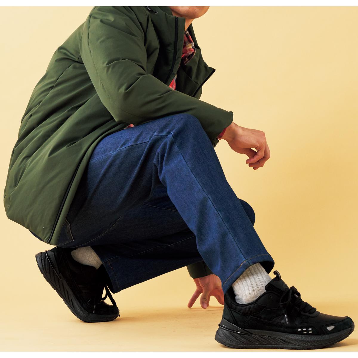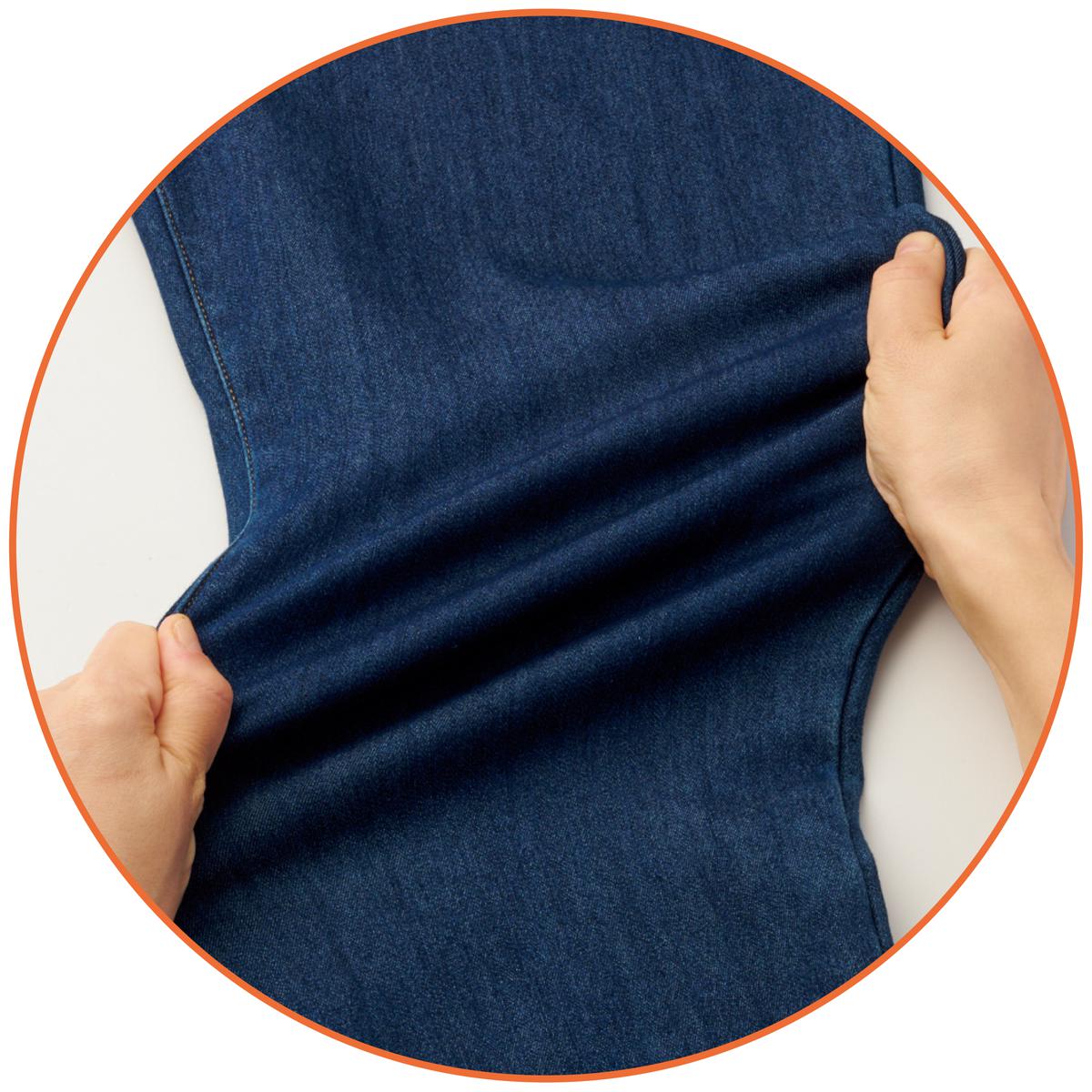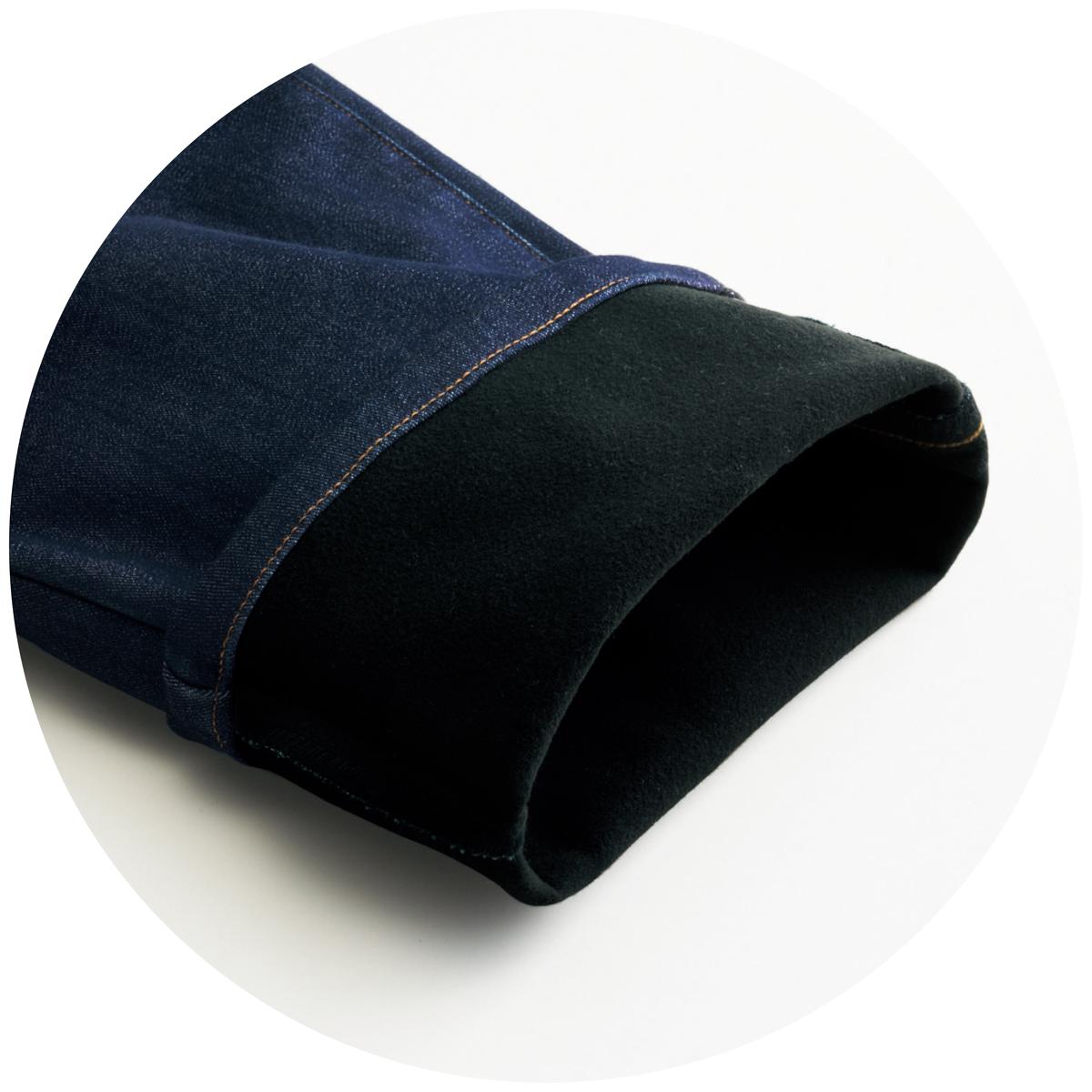 -お買い得ポイント-ふつうのジーンズに見えてあったかいのが嬉しい!-デザイン-ウエストは前開き仕様。前後左右にポケットがついているのもうれしいポイントです。-素材特徴-表地は、柔らかく伸びのよい素材。裏地は、目の細かいなめらかな起毛素材で心地いい肌ざわりです。