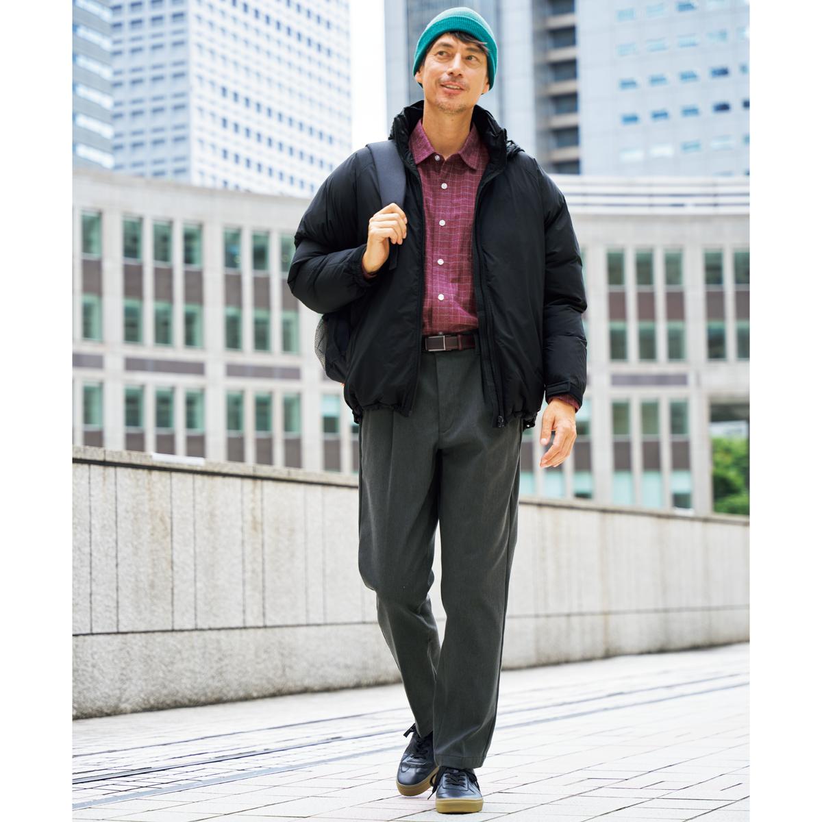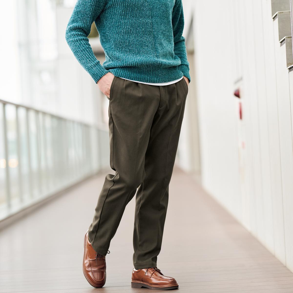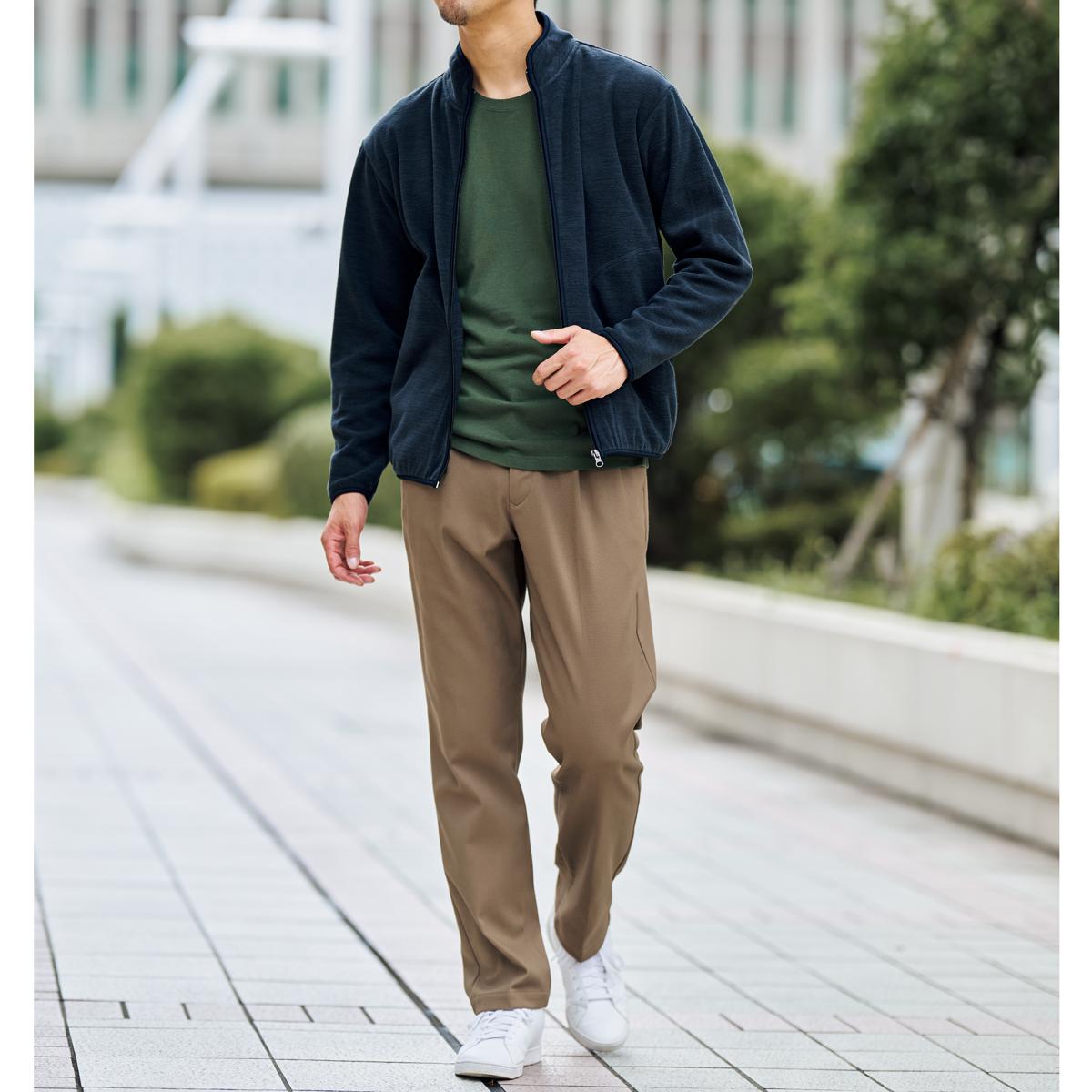 ゆったりはけて、ラクラク!裏フリースツータックチノパンツ。