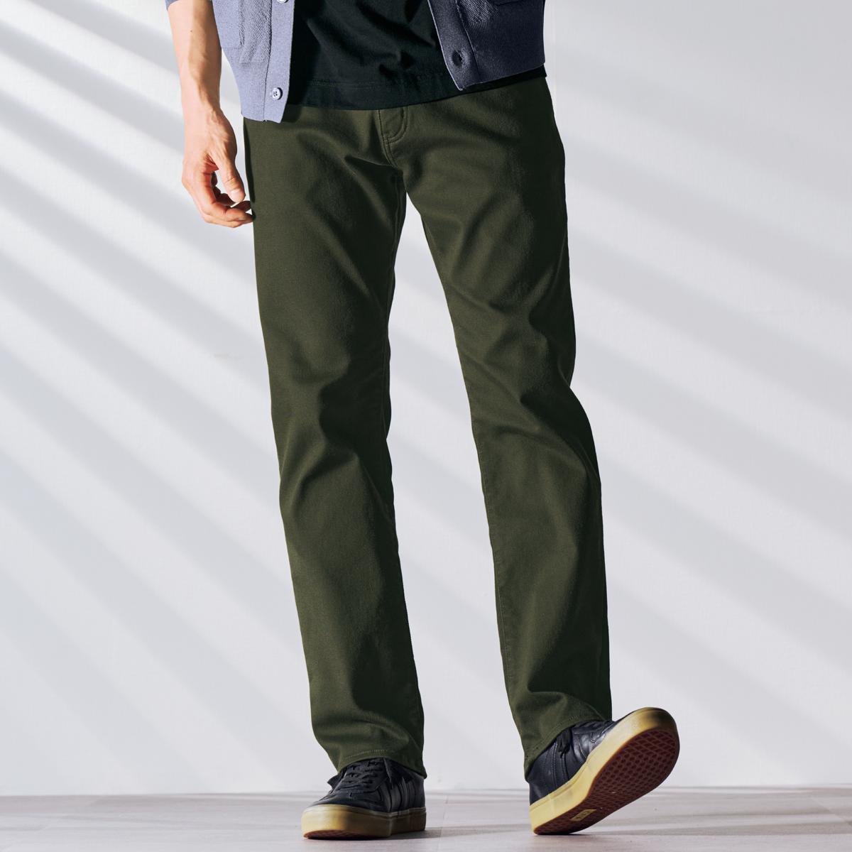 -お買い得ポイント-世界に誇る岡山デニムのカラーパンツ。トップスと合わせてはきこなしやすいブラック、ベージュ、カーキの3色。-デザイン-基本のストレートシルエットでありながら、どんな体型の方でも脚がすらりときれいに見えるよう、細部までラインにこだわってデザインしています。-素材特徴-まるでスウェットのような柔らかな肌ざわりでストレッチを効かせた伸びの良さ。体の動きにフィットして、心地よくラクなはき心地です。