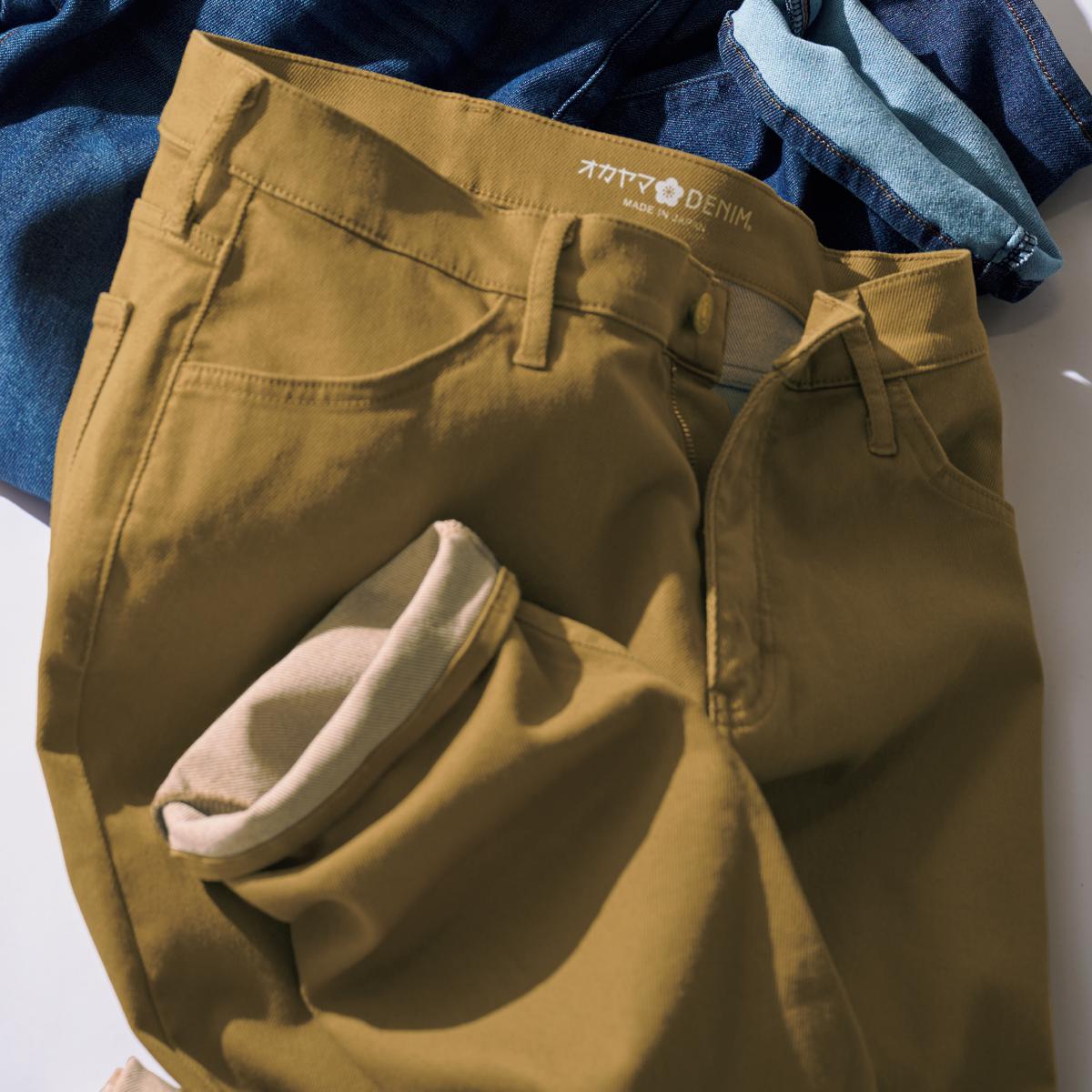 世界に誇る岡山デニムのカラーパンツ!合わせやすいカラーでコーデを楽しむ!スウェットのような柔らかさも魅力!