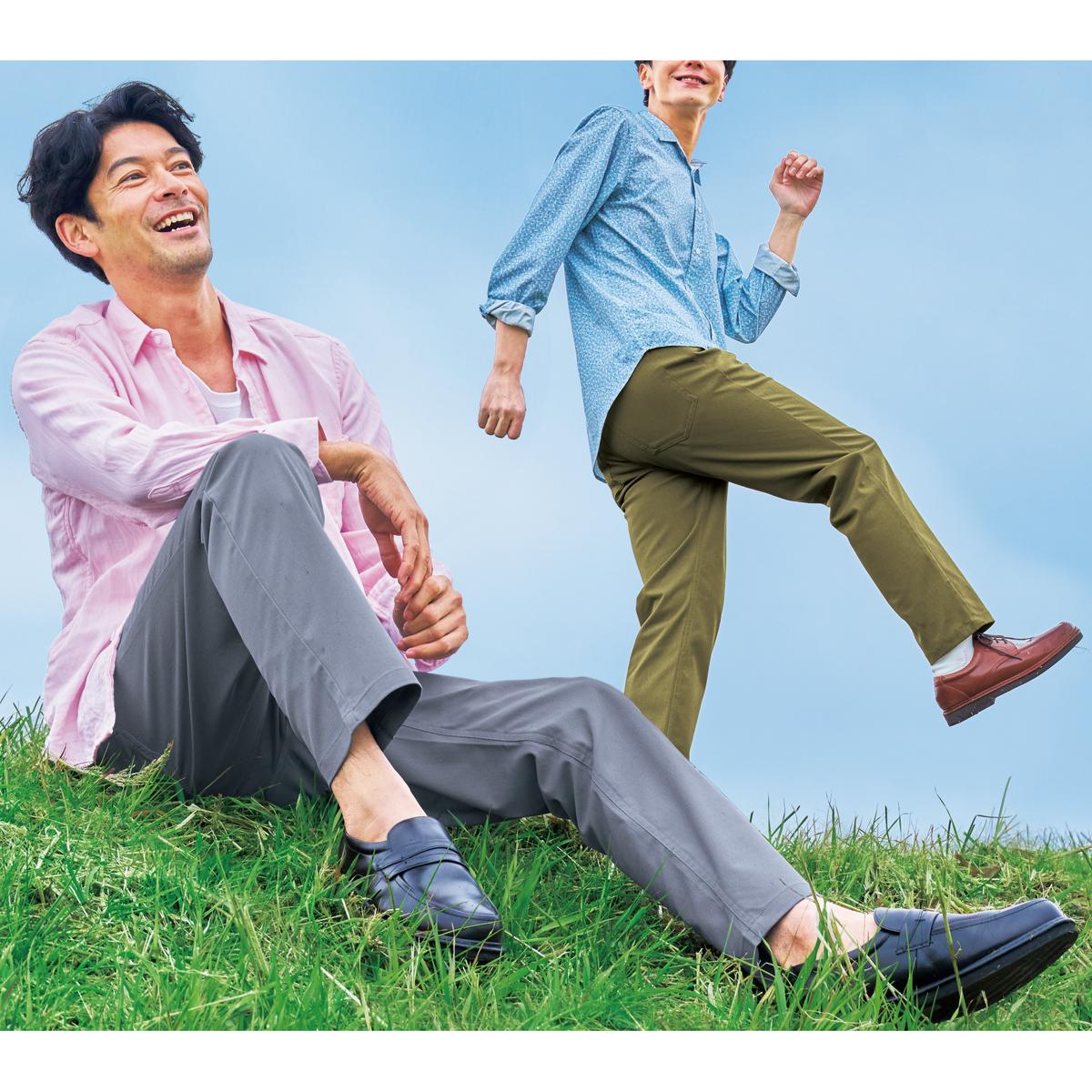 -お買い得ポイント-さりげないサイドゴムがうれしい。はき心地満足のフィット感。-デザイン-バックスタイルがスッキリ見えるサイドゴム。パンツのサイドもしっかりストレッチします。腰回りはスッキリしたサイズ感。-素材特徴-暑い日も肌ばなれがよい素材を使用。吸水性と速乾性の両方を備えており、快適なはき心地。伸縮性のある生地だから膝の曲げ伸ばしがラク。