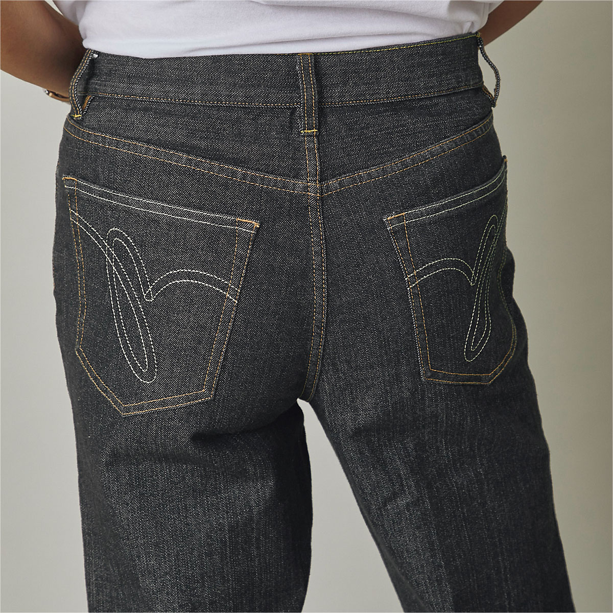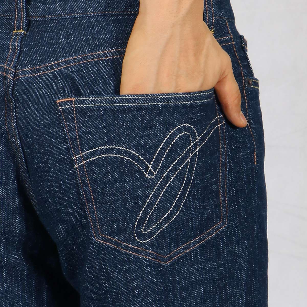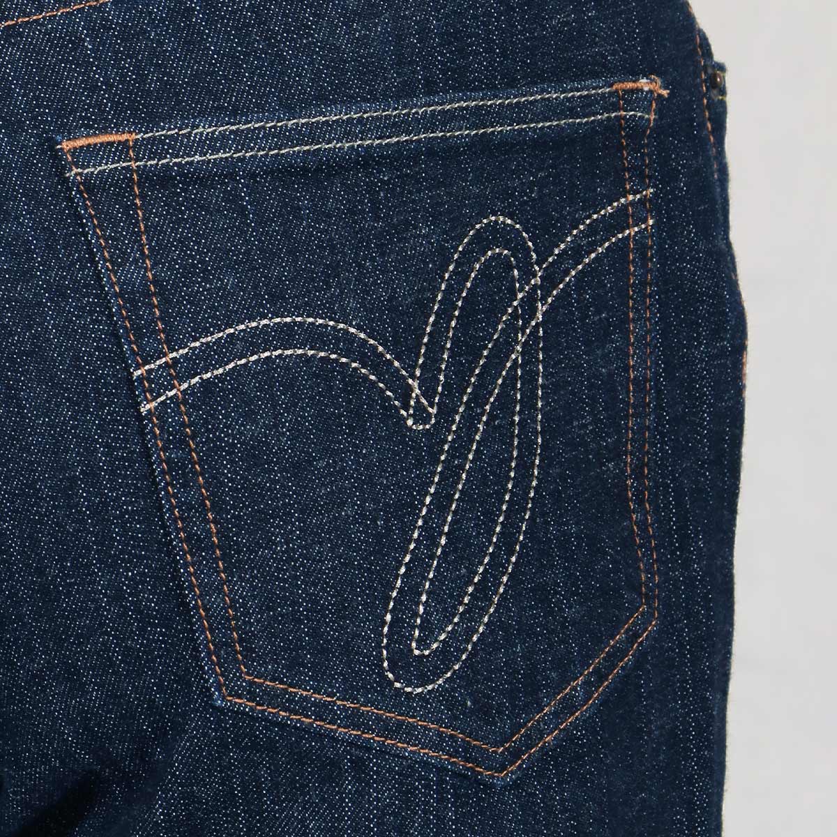 バックポケットの刺しゅうがポイント。本格的なジーンズに見える、こだわりのディテール。