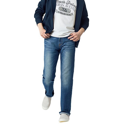 ヒップまわりのダブつきを抑えたストレートシルエットウォッシュブルー