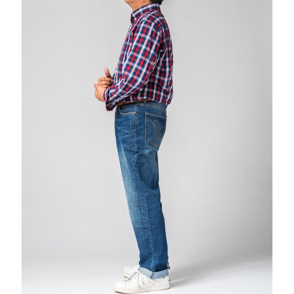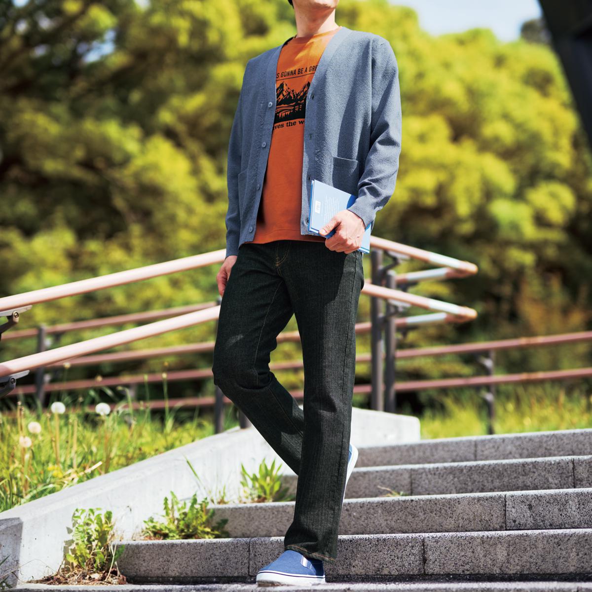 -お買い得ポイント-丁寧に仕上げられたファスナーまわりや、ステッチ使いなど、はくほどに愛着のわく1本です。-デザイン-ユーズド加工を施したウォッシュブルー、ヒゲ・ブラスト加工なしのインディゴブルー&ブラックDの3色展開。届いた日からすぐはける裾上げ不要の股下5丈展開です。-素材特徴-ジーンズらしいしっかりした素材をストレッチ仕上げにしているので、見た目とは裏腹に動きやすく快適なはき心地。