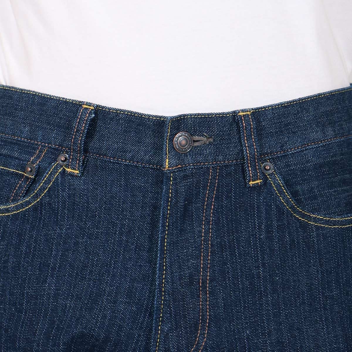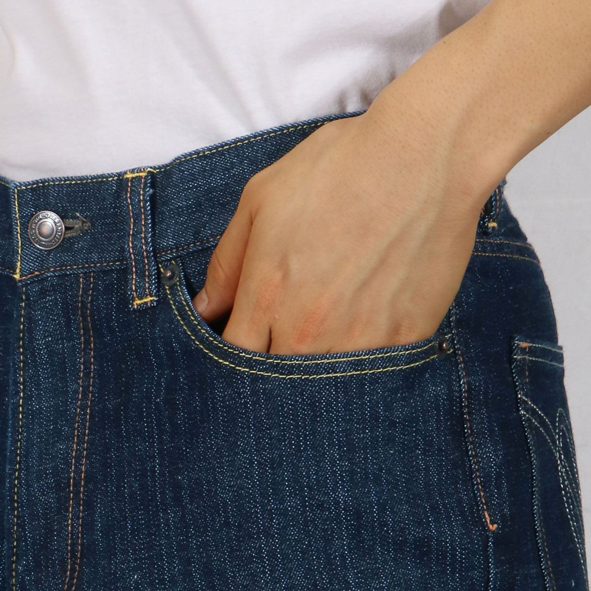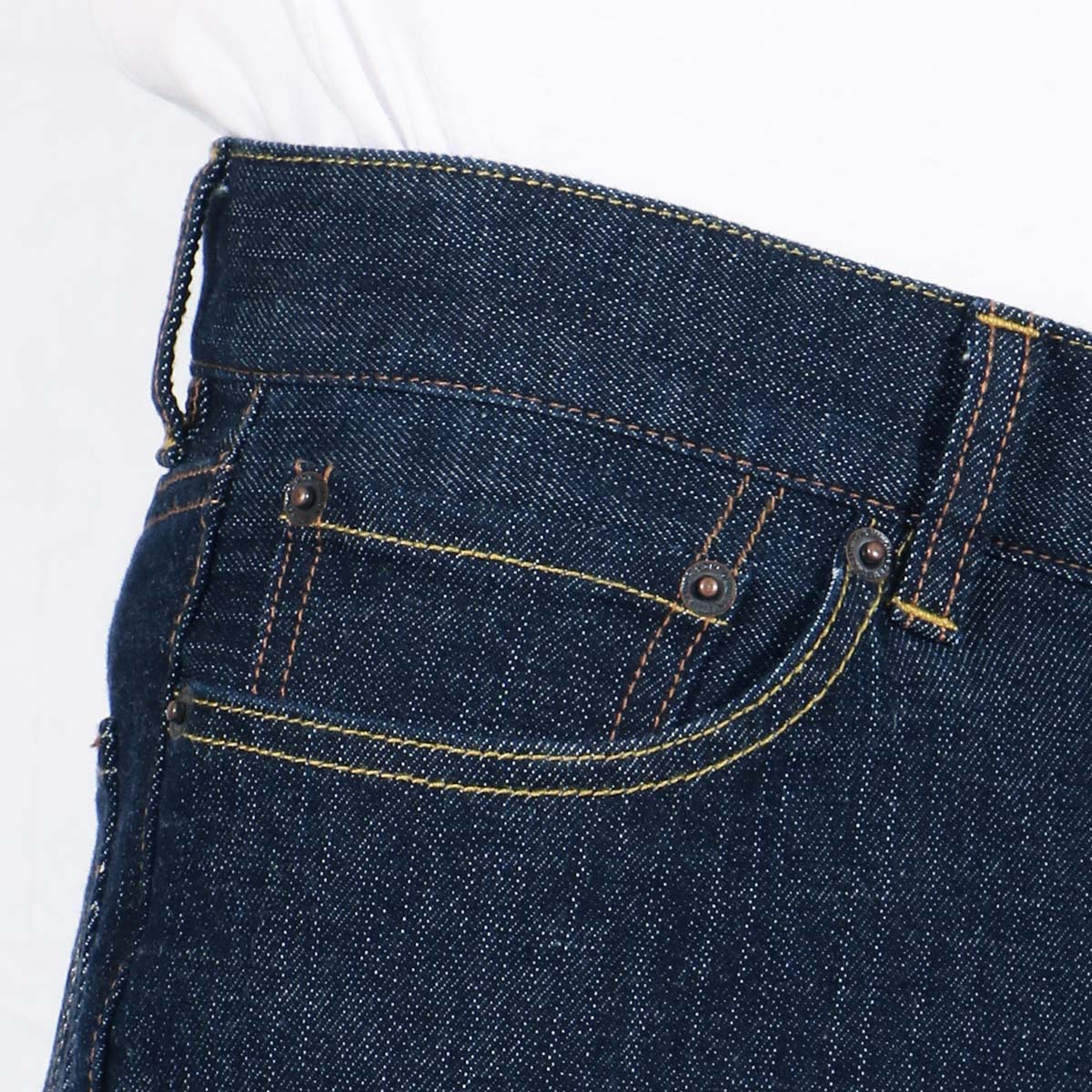 ヒゲ・ブラスト加工なしのインディゴブルー。カジュアルにもきれいめにもはける、着回し力の高い定番の1本です。